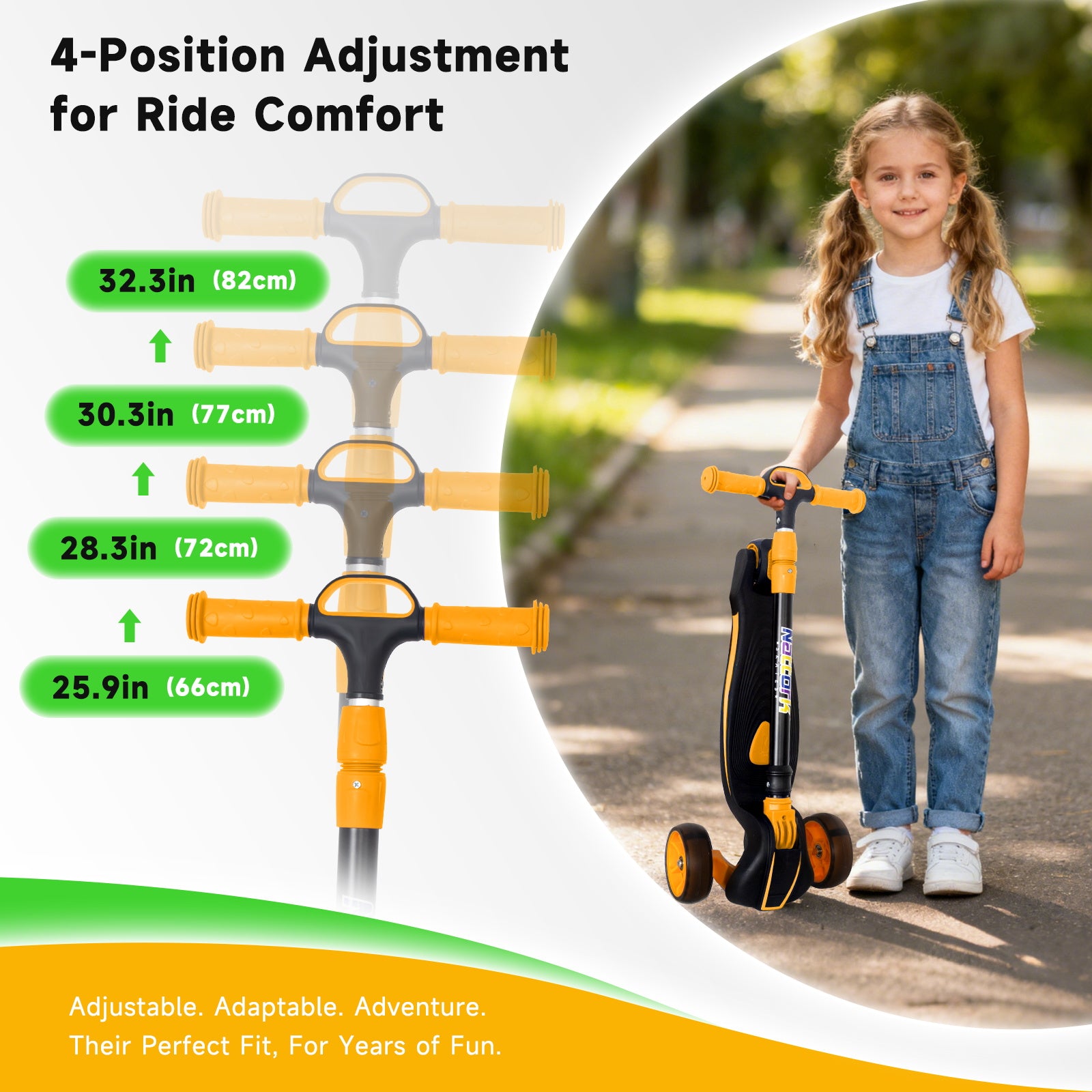 Meet the Nattork Foldable Light-Up 3-Wheel Scooter, the ultimate ride for kids and toddlers ages 3–12. Designed for both indoor and outdoor fun, this vibrant orange scooter blends safety, comfort, and excitement to keep your little one active and smiling every day. Whether they’re just learning to balance or already zooming with confidence, this scooter grows with them — thanks to its adjustable height and sturdy build. With a weight capacity of up to 120 lbs, it’s built to last through years of play and growth.