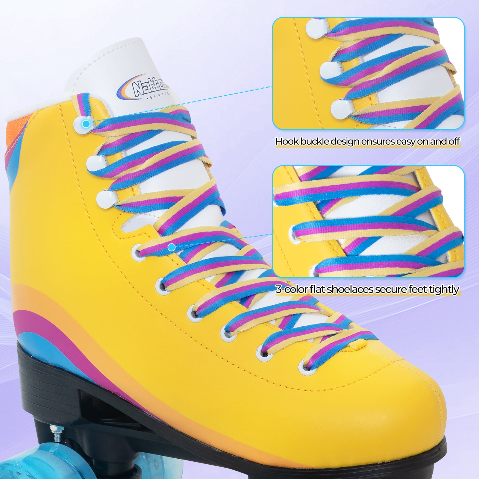 Discover the perfect start to your skating journey with these classic adult roller skates! Designed for stability and safety, their sturdy build helps beginners gain confidence and control. Equipped with light-up wheels that sparkle as you move, they turn every glide—whether at the rink, on the boardwalk, or cruising through city streets—into a stylish and energetic ride.