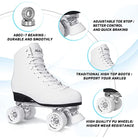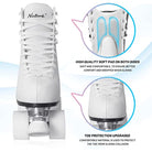 The exterior of these skates features a clean, all-white finish that exudes elegance and simplicity. The classic design ensures they will match any outfit, making them a versatile addition to your skating gear.