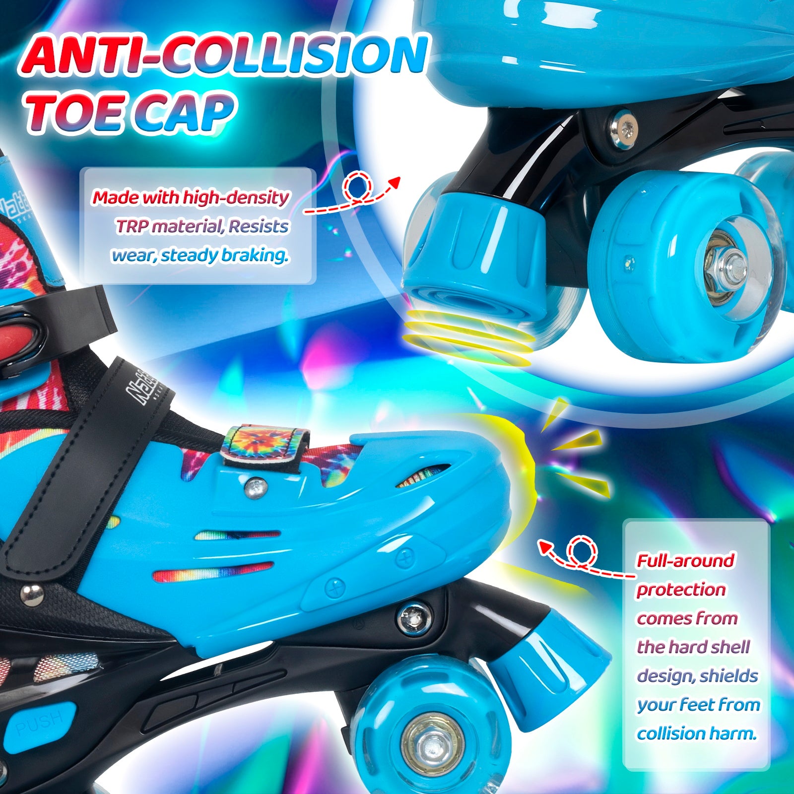 These Nattork skates adjust across 4 sizes with a single button, ensuring a perfect fit as your child grows. No need to replace skates frequently—this long-lasting design keeps skating comfortable, enjoyable, and cost-efficient for families.