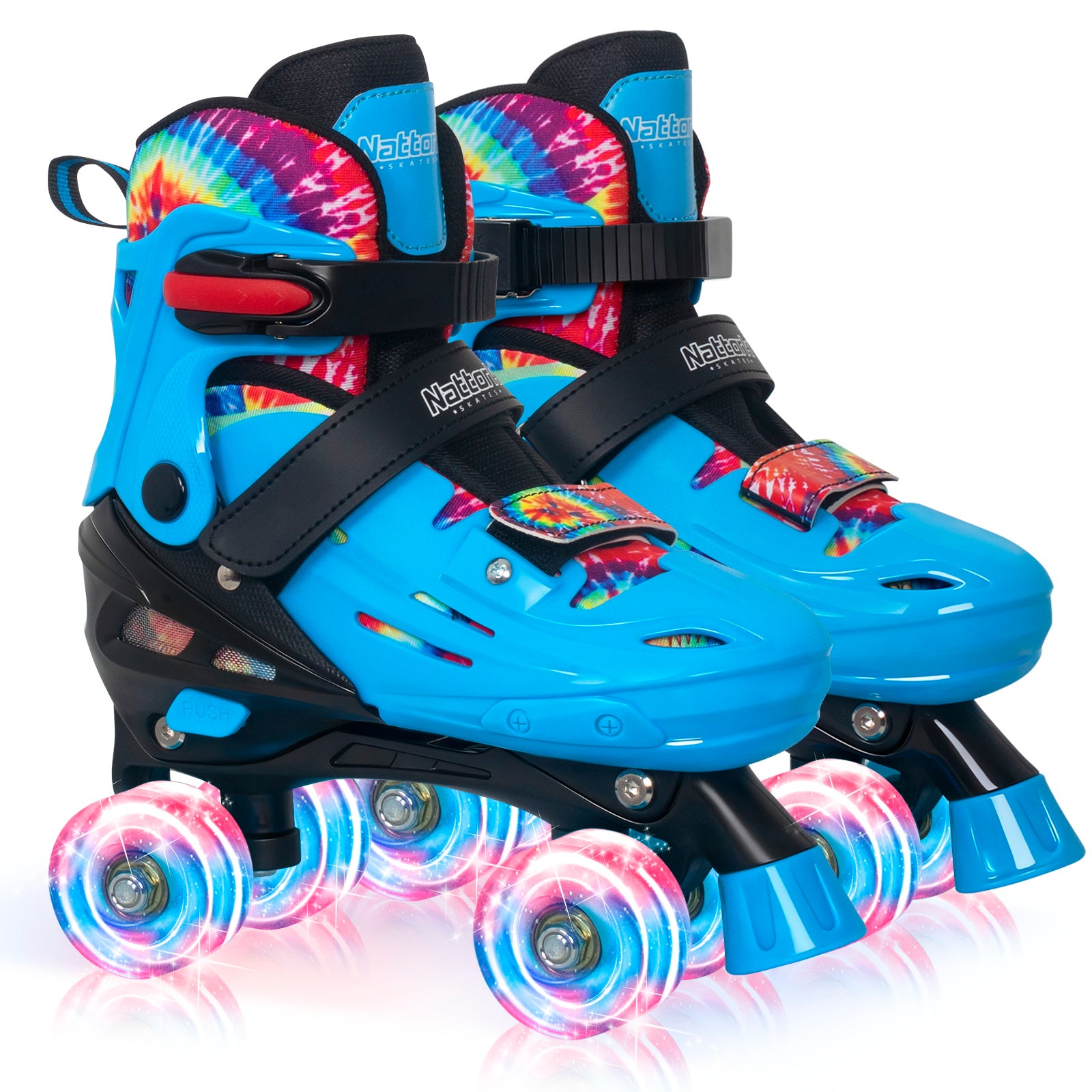 Most Nattork skates are adjustable across 4 sizes, so they can grow with your child — simply press the size-adjust button to extend the skate as their feet grow.