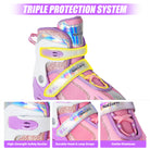 These skates boast remarkable adjustability, presenting four distinct size variations. This eliminates the worries of acquiring the wrong size or the skates being quickly too small for your child's rapidly growing feet. Thanks to the effortless ONE-PUSH-CHANGE size modification mechanism, finding the ideal fit for ensuring ultimate comfort and stability is a breeze.