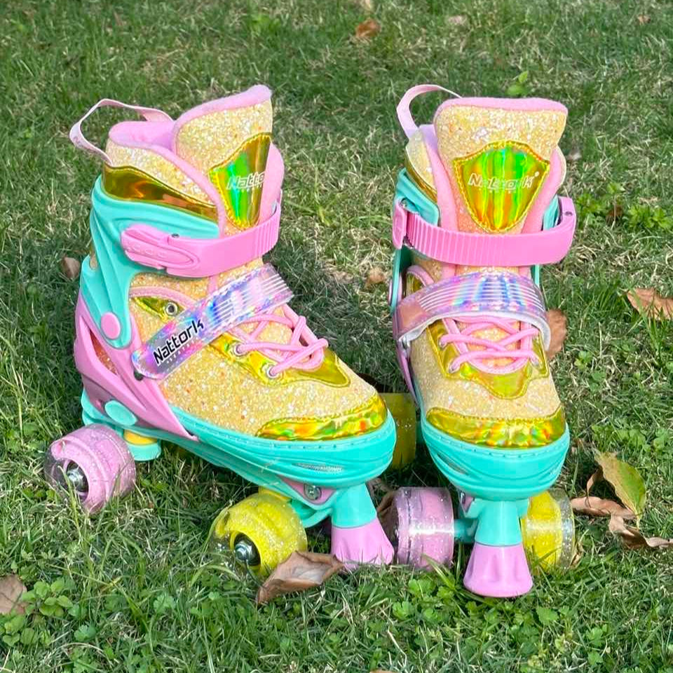 Most Nattork skates are adjustable across 4 sizes, so they can grow with your child — simply press the size-adjust button to extend the skate as their feet grow.