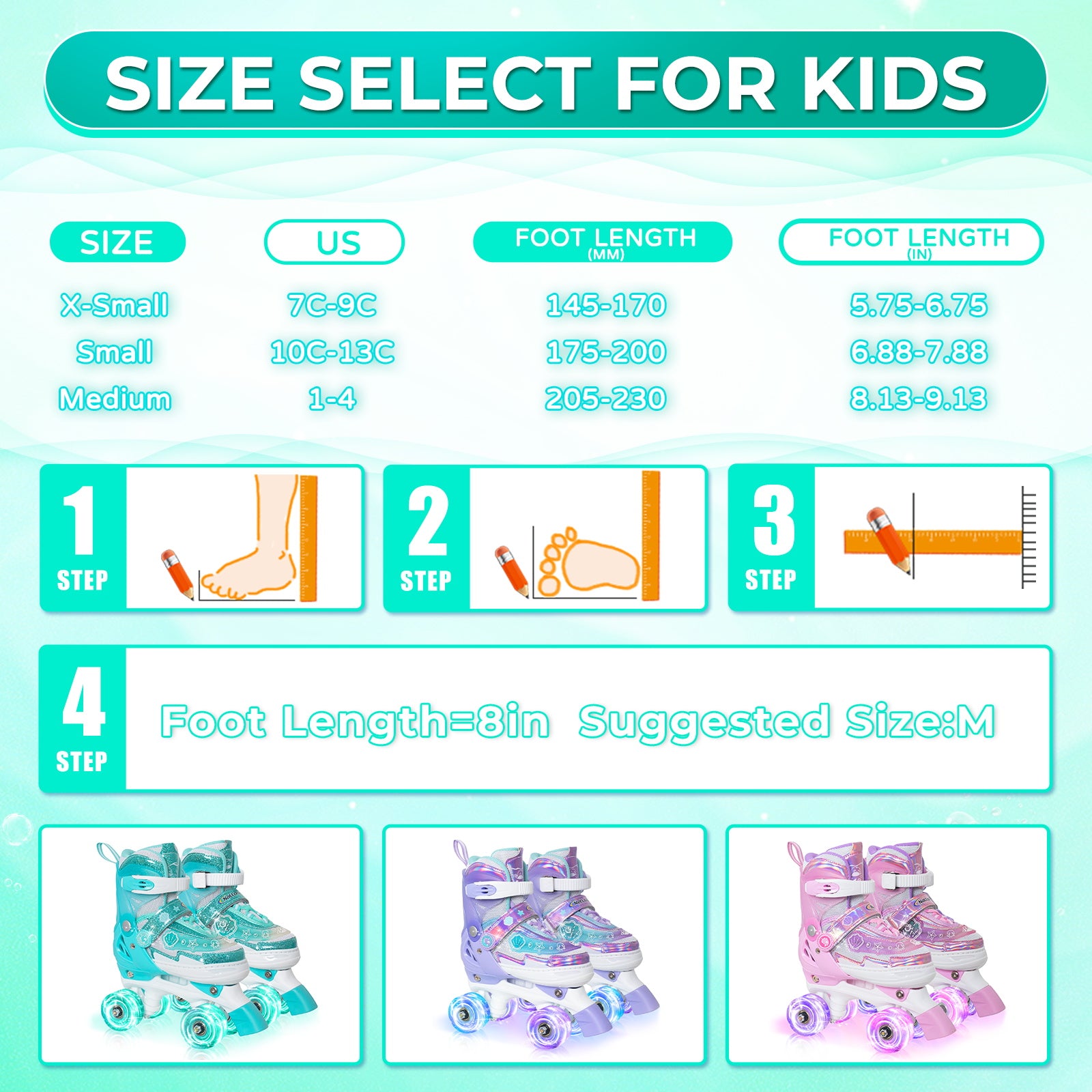 The best way to find the right fit is to measure your child’s foot length first.