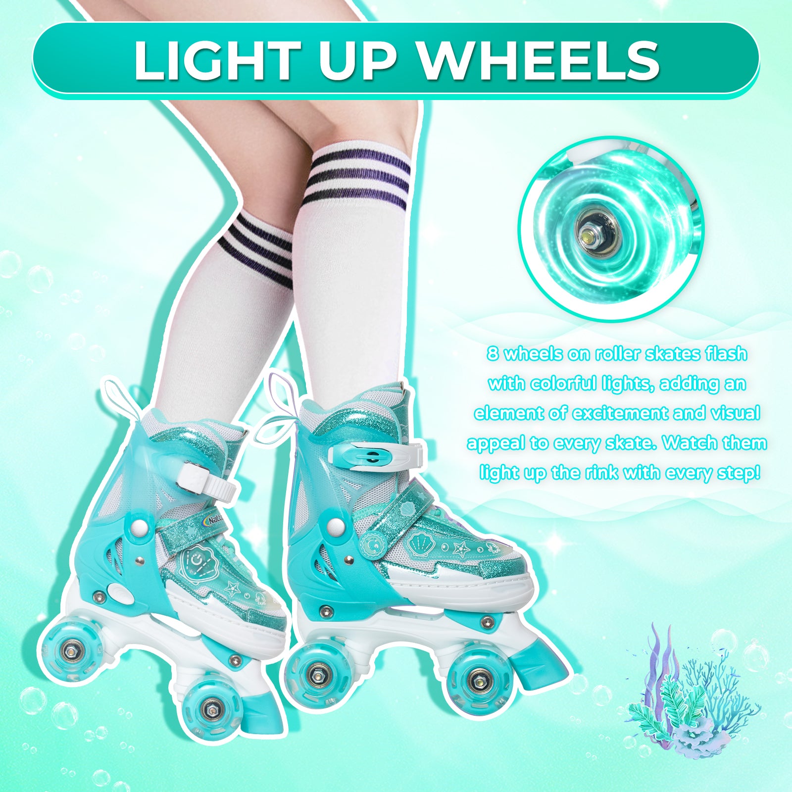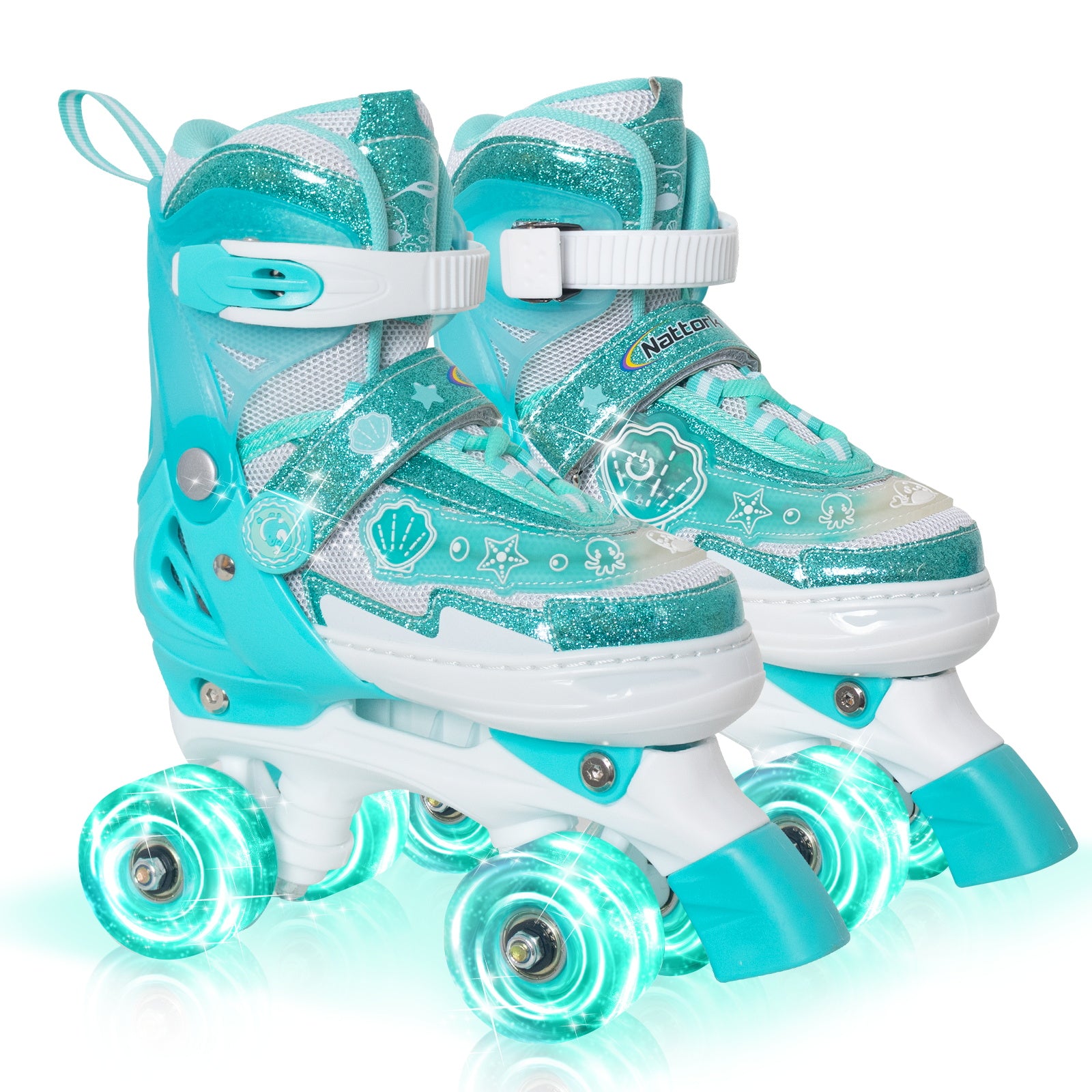 Let your child’s imagination run wild with the Nattork Adjustable Roller Skates - green Oceanic. They’ll be ready to explore the wonders of the ocean in style, with skates that combine fun, beauty, and the perfect touch of aquatic adventure!