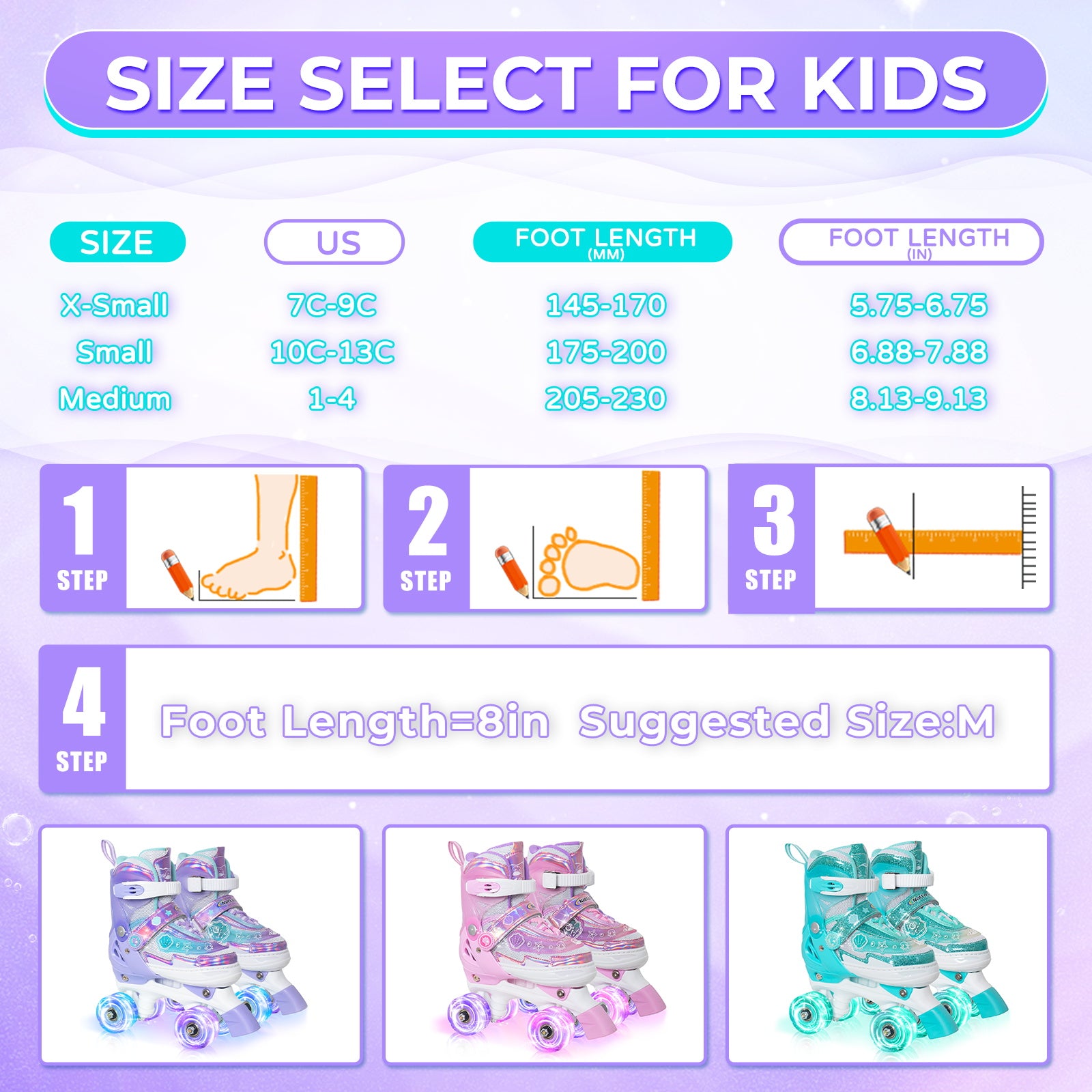 These roller skates are more than just a pretty design—they’re crafted with your child’s comfort and safety in mind. The adjustable sizing system ensures a perfect fit as their feet grow, while the secure buckle closure and high-top support provide stability and protection during every ride. Whether they’re skating at the park or exploring indoor rinks, these skates offer a smooth and controlled experience, making them ideal for both beginners and little skating enthusiasts.