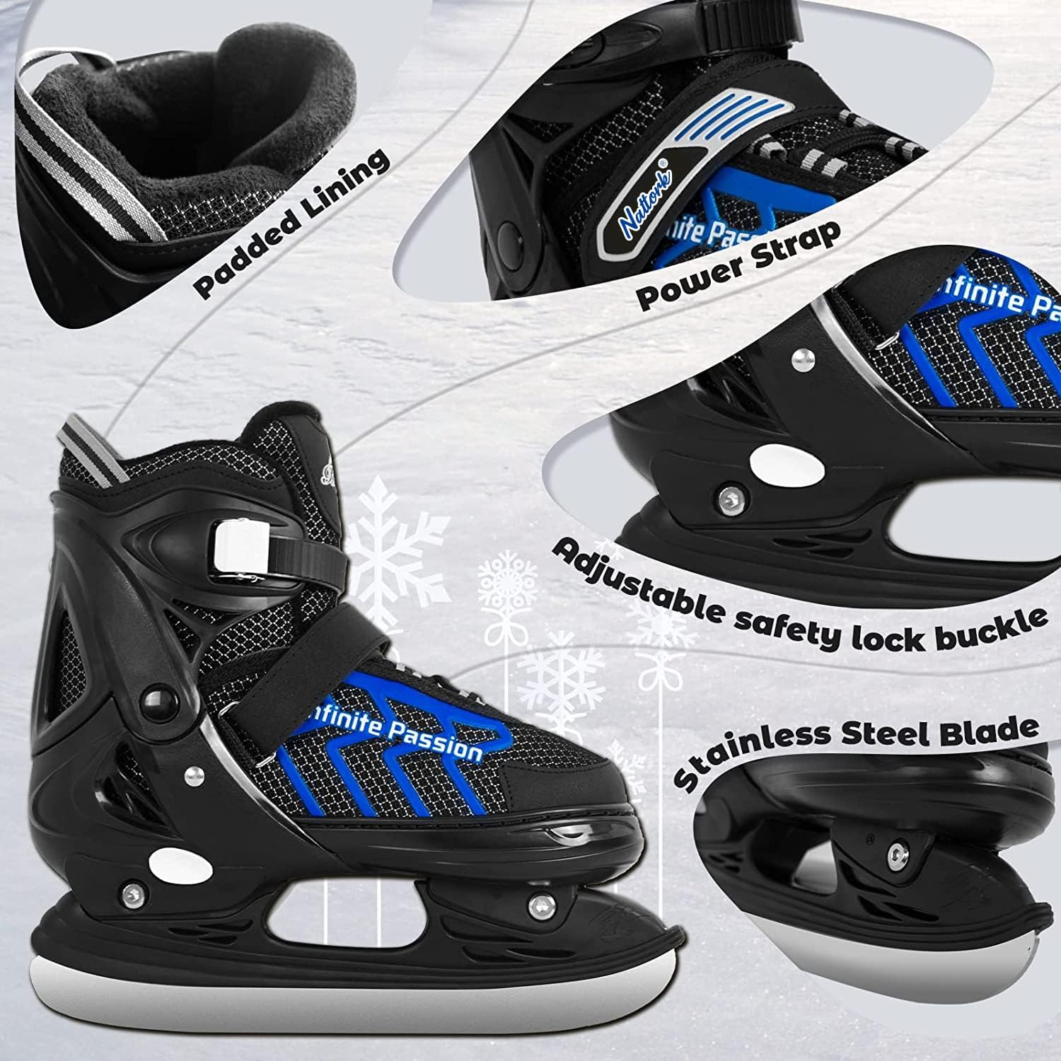 Nattork Bolt Ice Skates for Kids & Adults - Blue