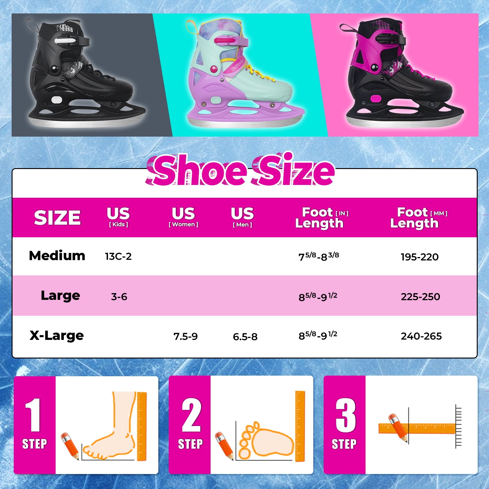 No more outgrowing skates too soon! With a simple one-button adjustment, these ice skates expand to four sizes, making them the perfect long-term companion for your child’s skating journey.