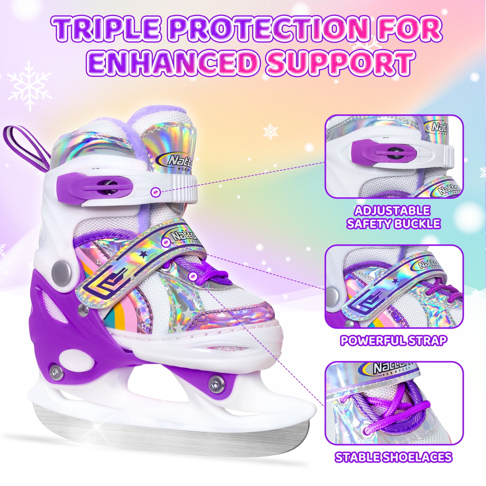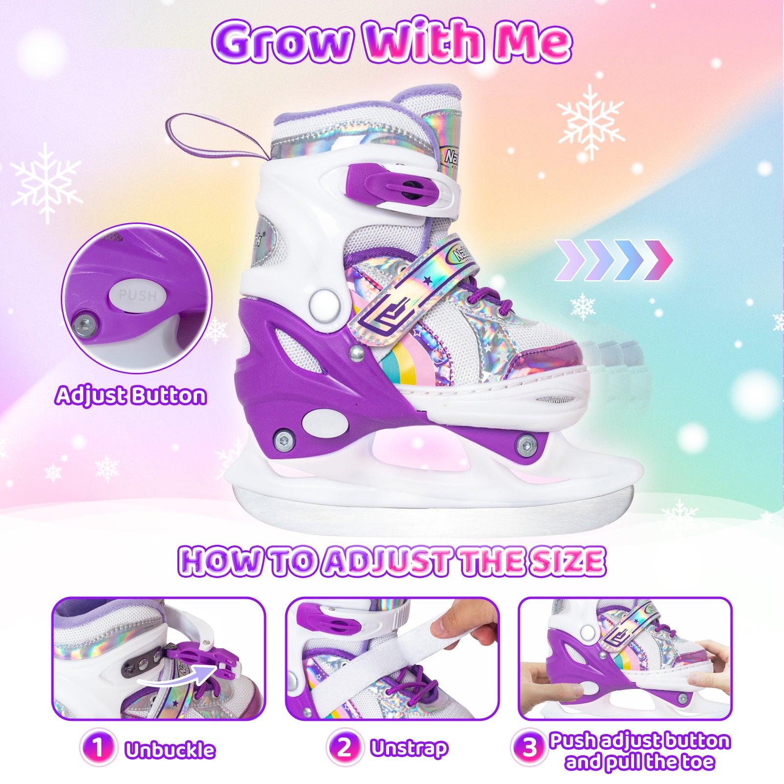 No more outgrowing skates too soon! With a simple one-button adjustment, these ice skates expand to four sizes, making them the perfect long-term companion for your child’s skating journey.