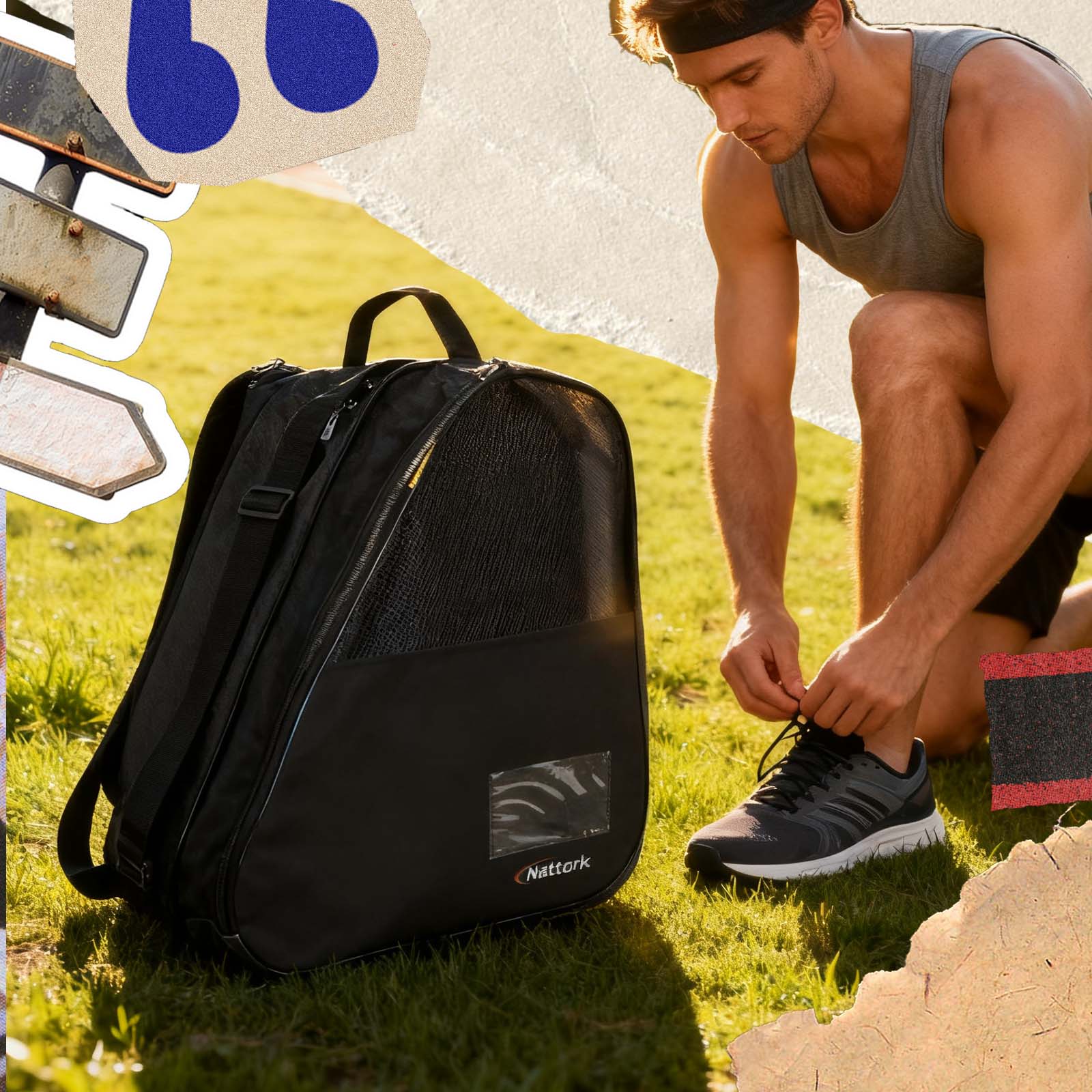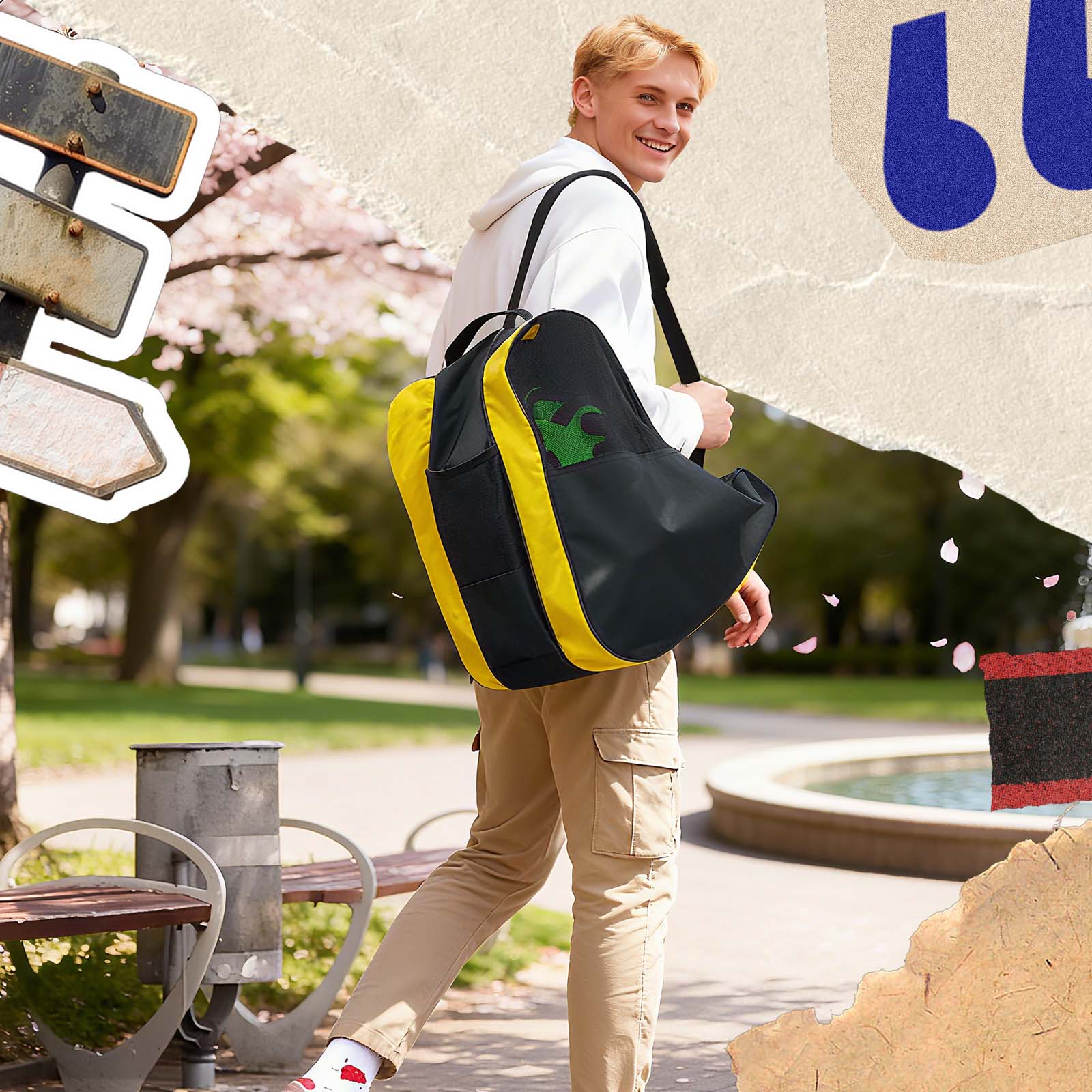 HIGH-QUALITY MATERIALS: Crafted from wear-resistant 600D Oxford fabric, this bag is both thick and durable. The additional PVC coating enhances heat, chemical, and UV resistance, extending the bag's lifespan. An extra inner lining helps protect against wear and tear from skate wheels or blades.