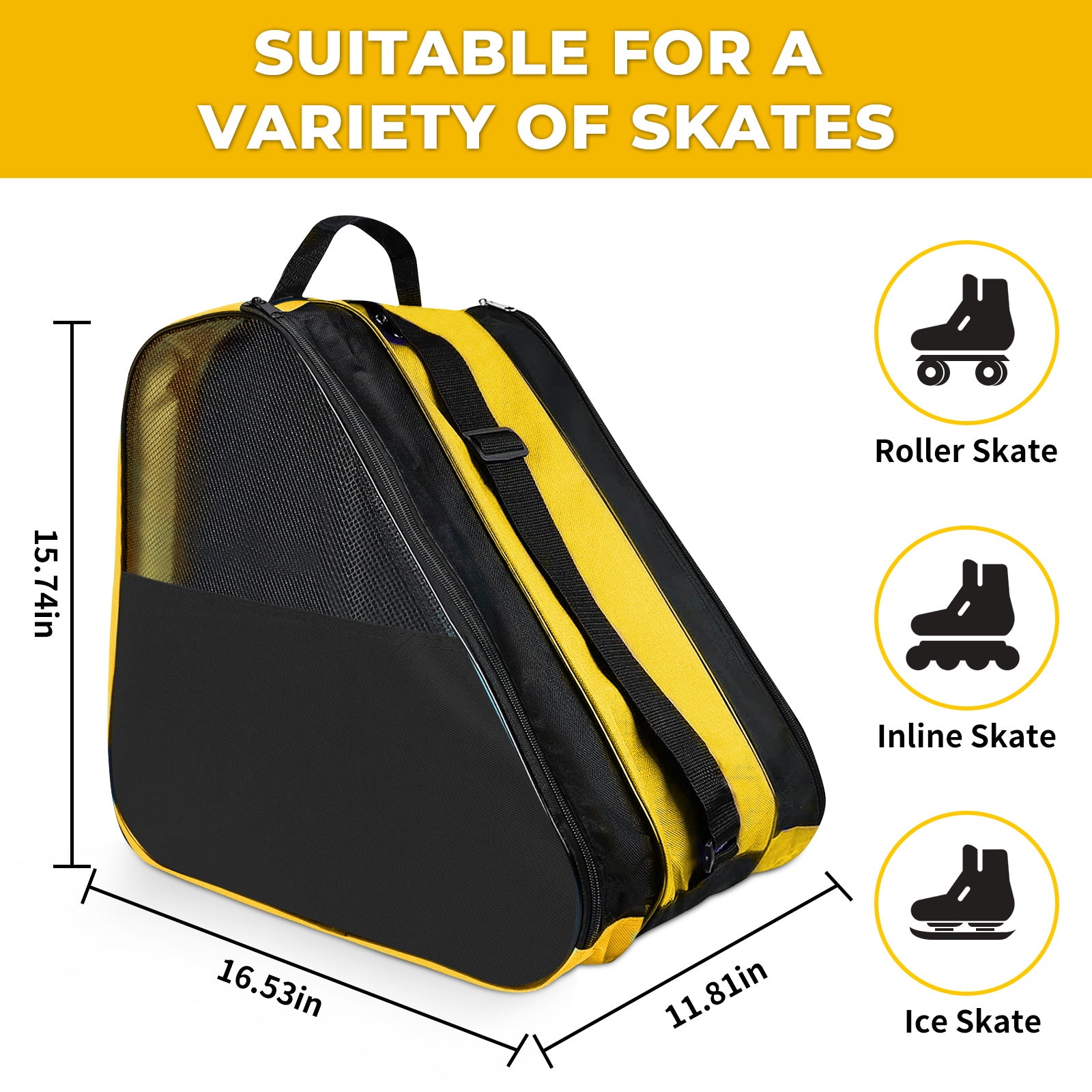 LARGE CAPACITY: The roller skate bag measures 42 x 40 x 30 cm, providing ample space for skate shoes, whether inline, quad, or even children's and adult sizes. Store everything you need for your skating adventures with ease!