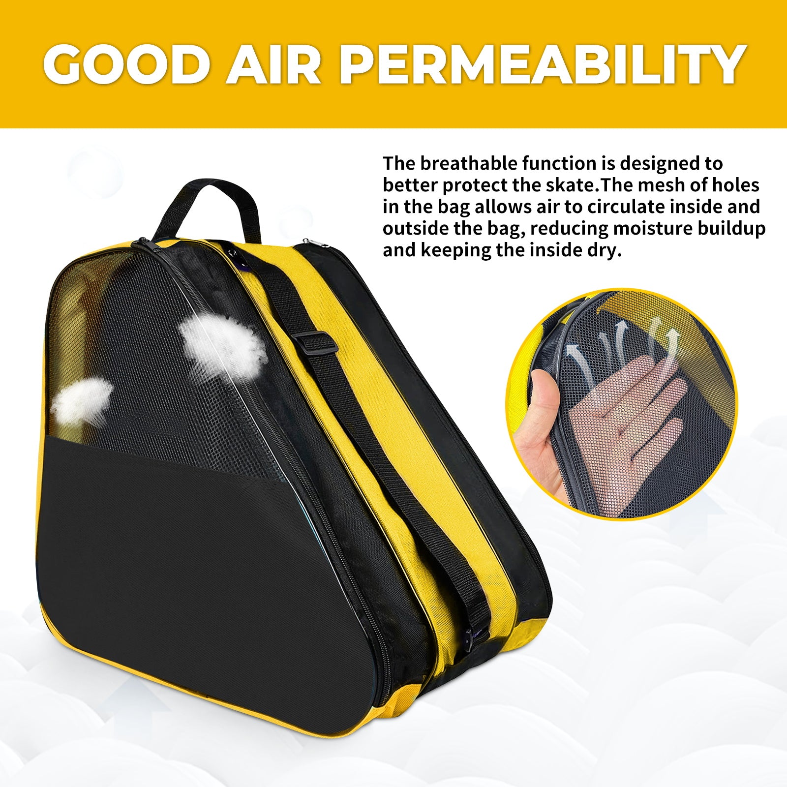 BREATHABLE MESH: Featuring hexagonal mesh fabric on the top half of the side pockets, this bag promotes ventilation for your skates, preventing odors and keeping them fresh after use.