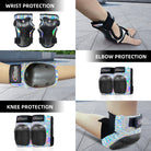 Equipped with double elastic straps and a thumb hole on the wrist guards, these pads stay in place during all kinds of activities, from skateboarding to cycling.