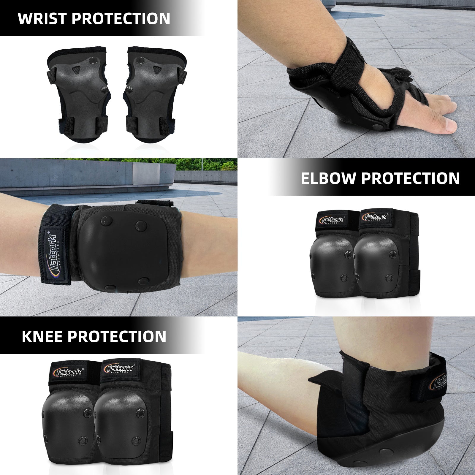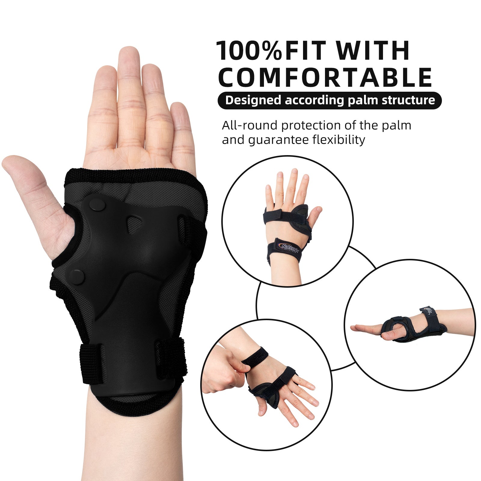 - Designed for a Secure Fit: Equipped with double elastic straps and a thumb hole on the wrist guards, these pads stay in place during all kinds of activities, from skateboarding to cycling.