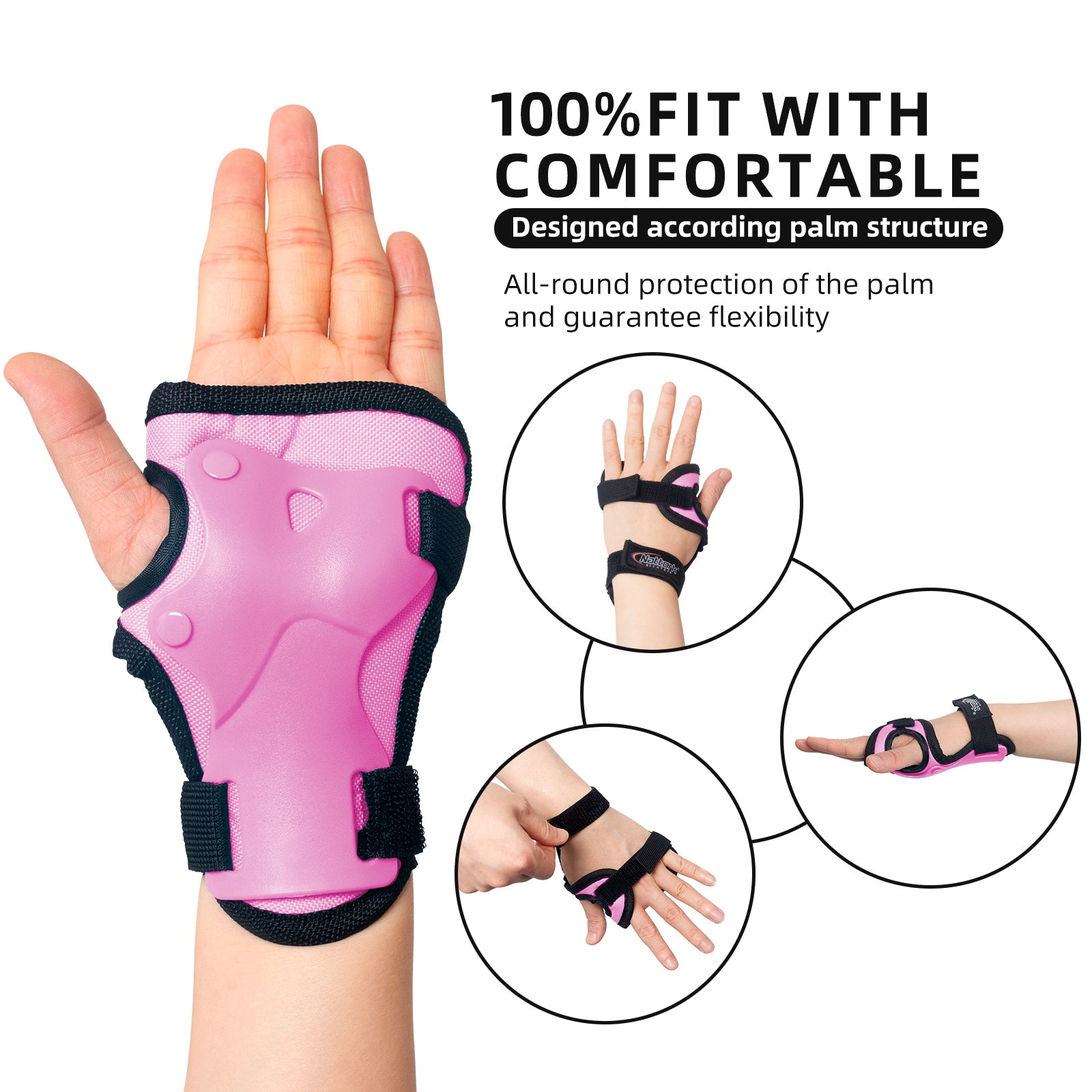 - Designed for a Secure Fit: Equipped with double elastic straps and a thumb hole on the wrist guards, these pads stay in place during all kinds of activities, from skateboarding to cycling.