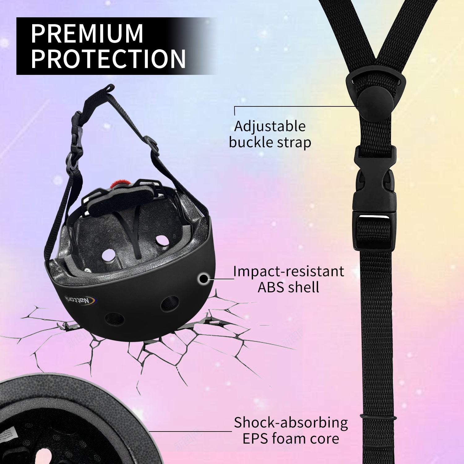 The Nattork helmet features an easy-to-use adjustment system that fits head sizes from 18.11" to 20.5", ensuring a secure, customized fit as your child grows. Weighing only 300g, it feels light and easy to wear.