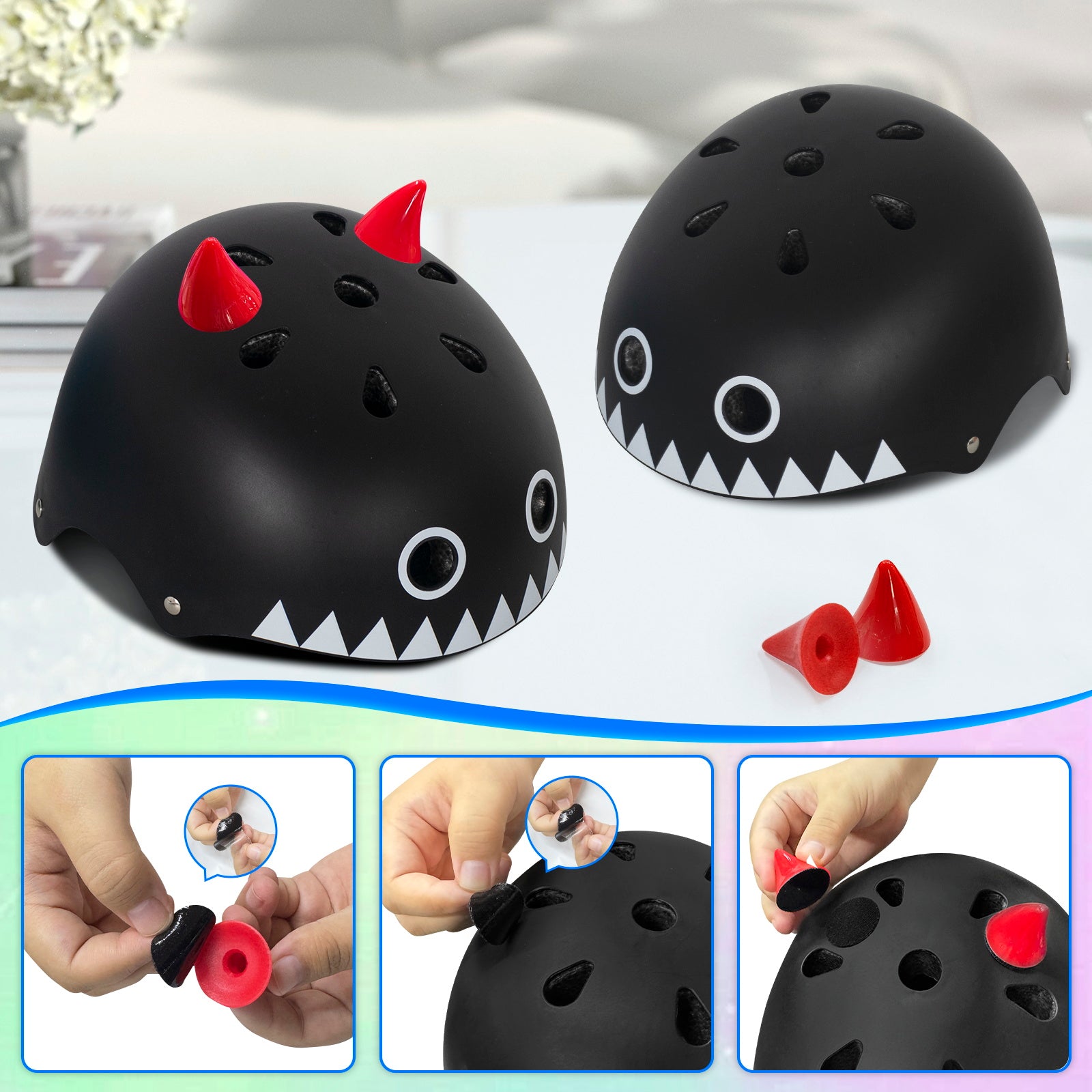 Protection meets personality! Choose from six fun and stylish designs—including Black Devil, Rose Red Princess, Blue Dinosaur, and Punk Panda styles. Each one turns safety gear into something kids are excited to wear.