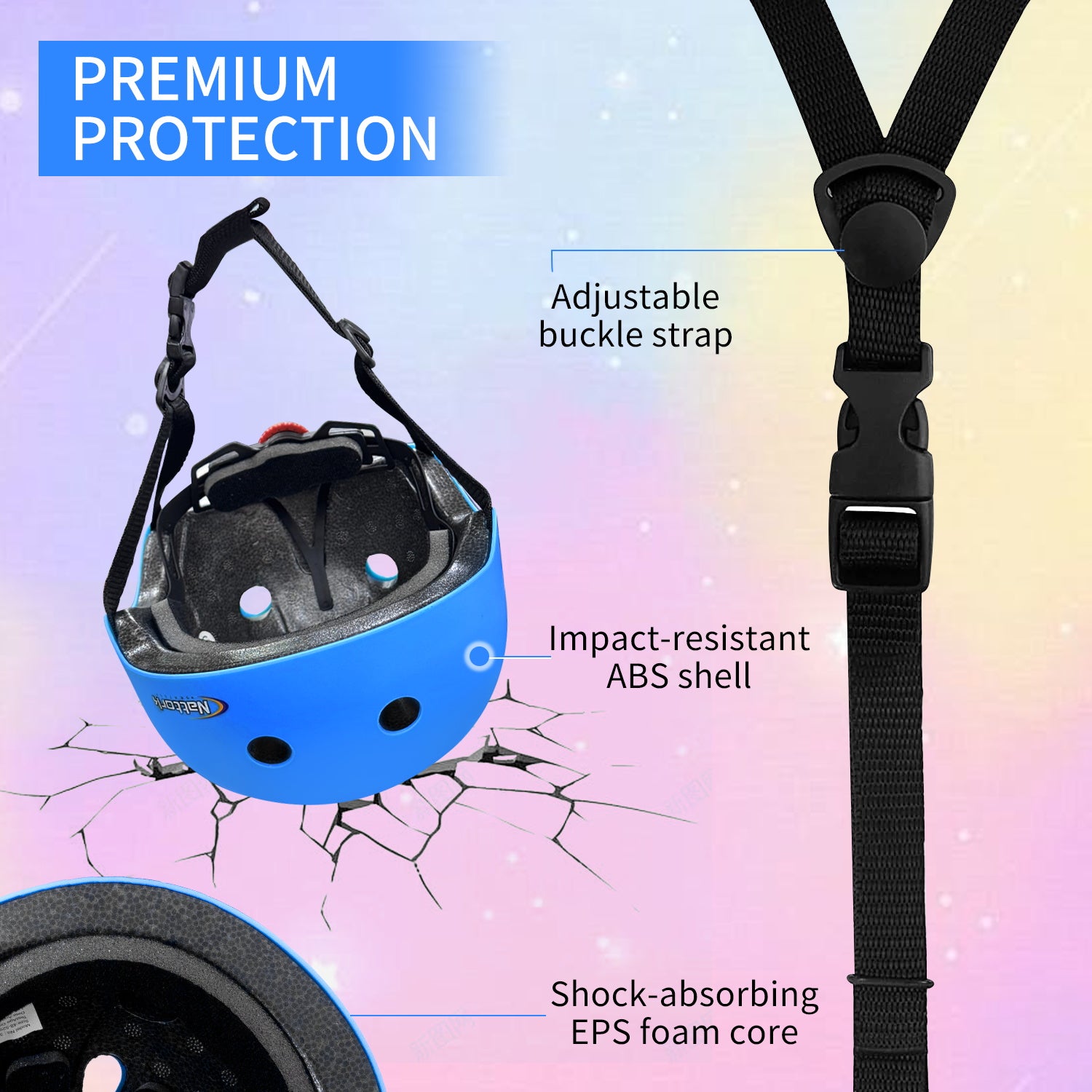 The Nattork helmet features an easy-to-use adjustment system that fits head sizes from 18.11" to 20.5", ensuring a secure, customized fit as your child grows. Weighing only 300g, it feels light and easy to wear.
