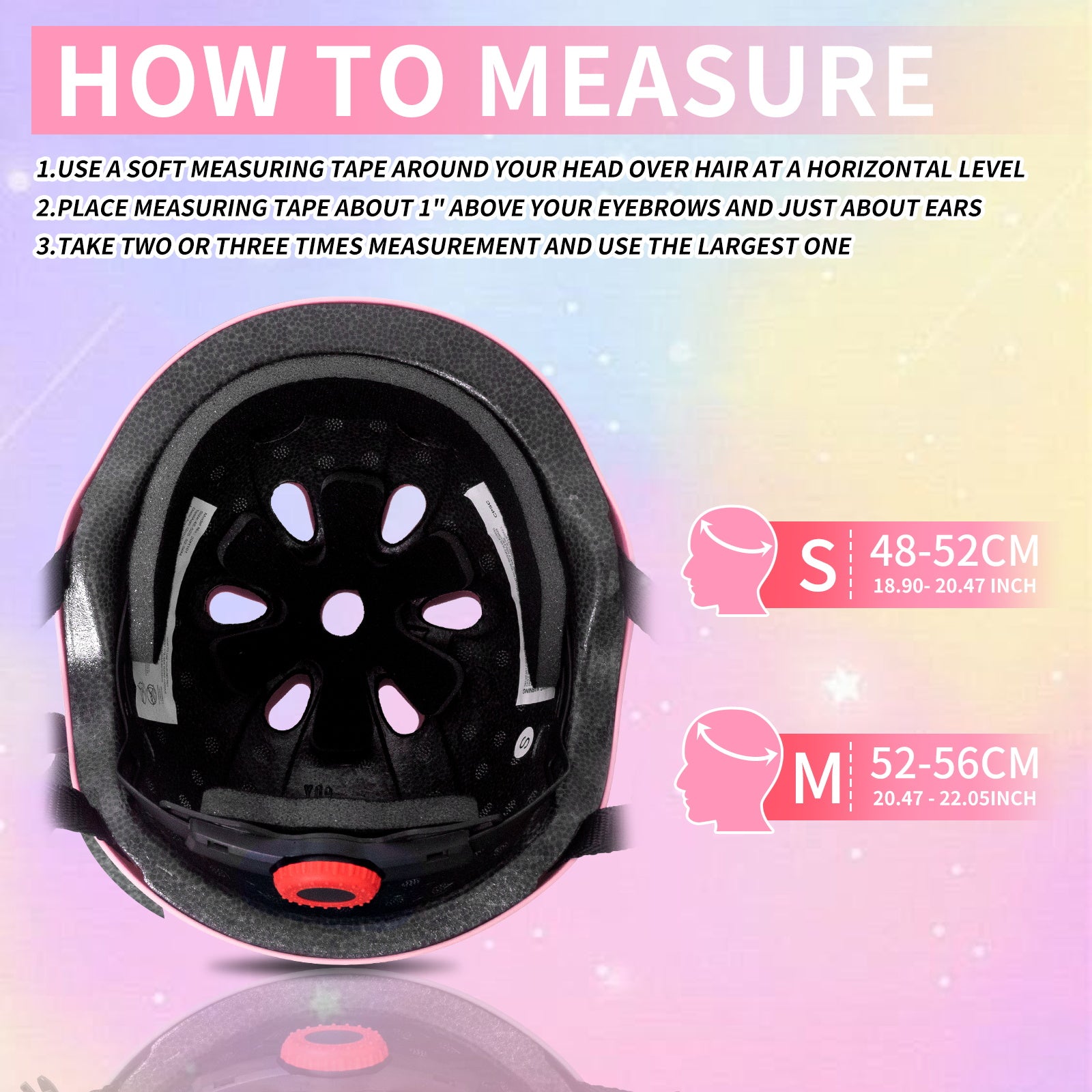 Adjustable & Multiple Sizes: Roller skating helmets are suitable for kids ages 4-12 years old, teens, adults. With an adjustable spin dial inside, you can flexibly tighten/loosen the helmet for a comfortable wearing experience. Three sizes for chosen: small 18.89"-22.04" (48cm - 56cm); Medium 20.47 "-22.83"(52 cm - 58 cm); Large 22.04'' -24.01''(56 cm - 61cm).