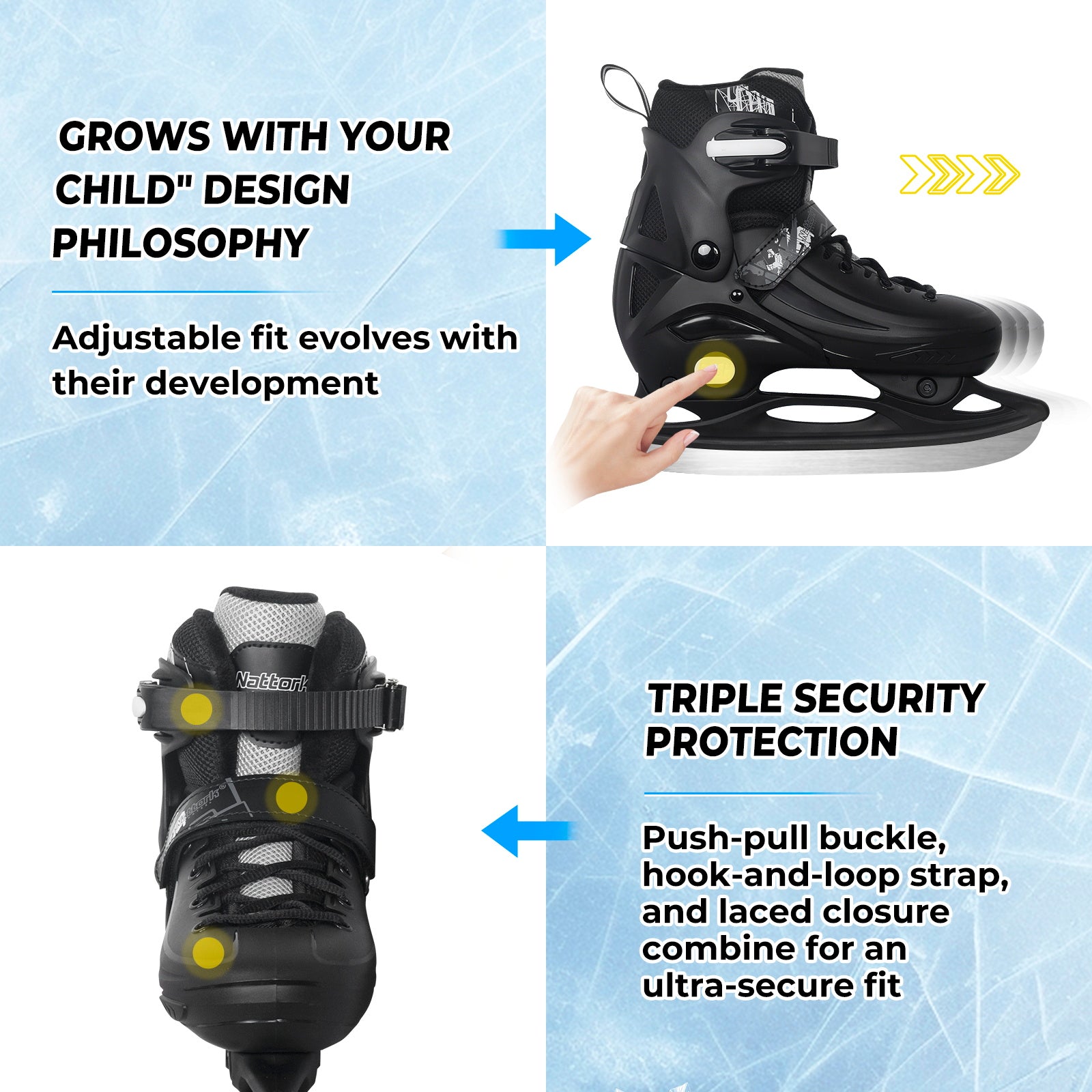 Nattork Speed Shell Ice Skates for Kids & Adults - Black