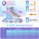 The "Fairy Wing" lavender inline skates come in four adjustable sizes, ensuring a custom-fit experience for every skater. Whether you are new to skating or a seasoned professional, finding the perfect size for a smooth and joyful ride is effortless.