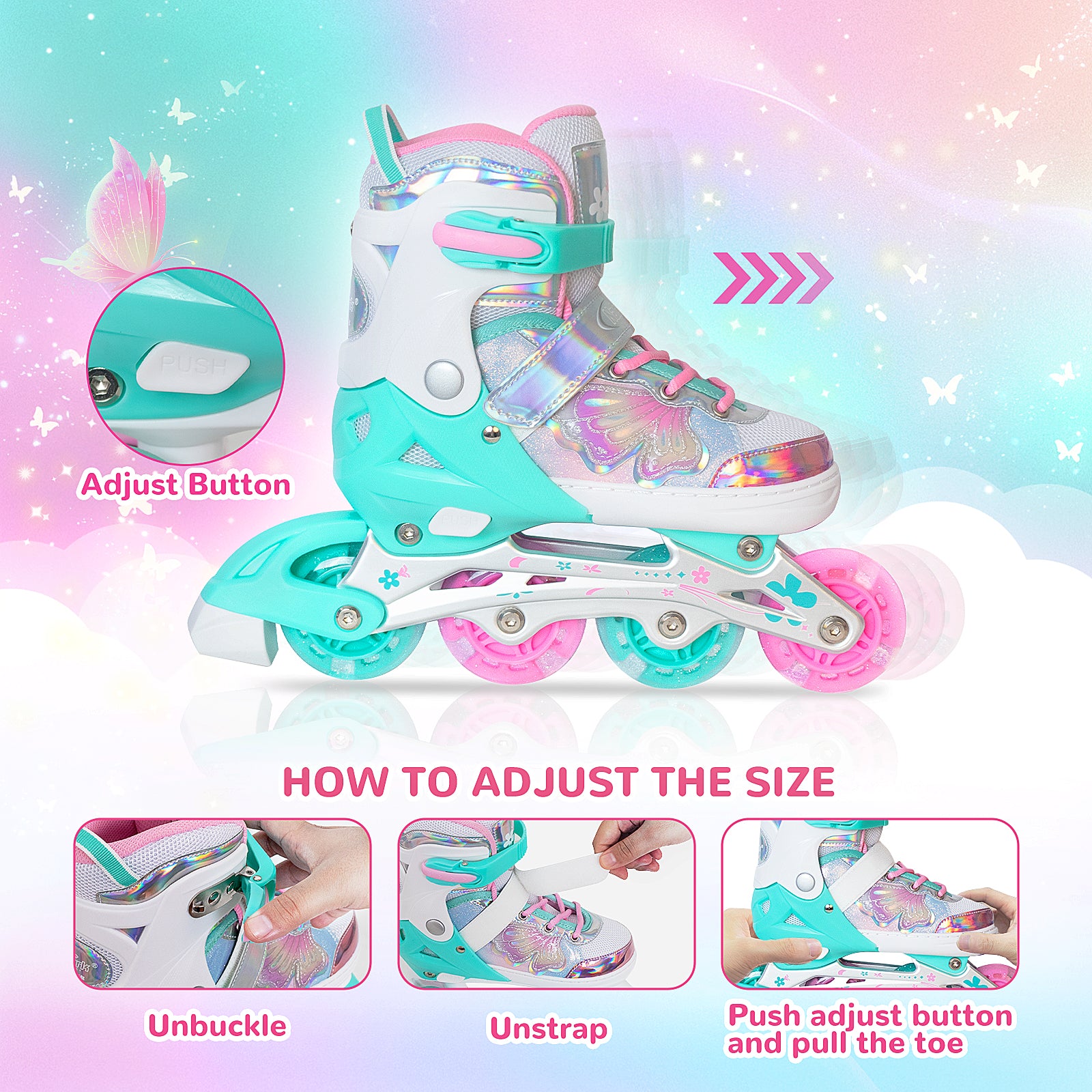Savor the "Fairy Wing" inline skates, as if stepping into a corner of a fairy tale world. The teal fantasy inline skates are meticulously crafted by artisans, blending a perfect harmony of fantasy and reality. The unique butterfly wing decorations, like fairies dancing in the breeze, add a touch of ethereal elegance to your skating. The "Fairy Wing" inline skates are perfect for beginners and kids, offering a magical blend of style and functionality.