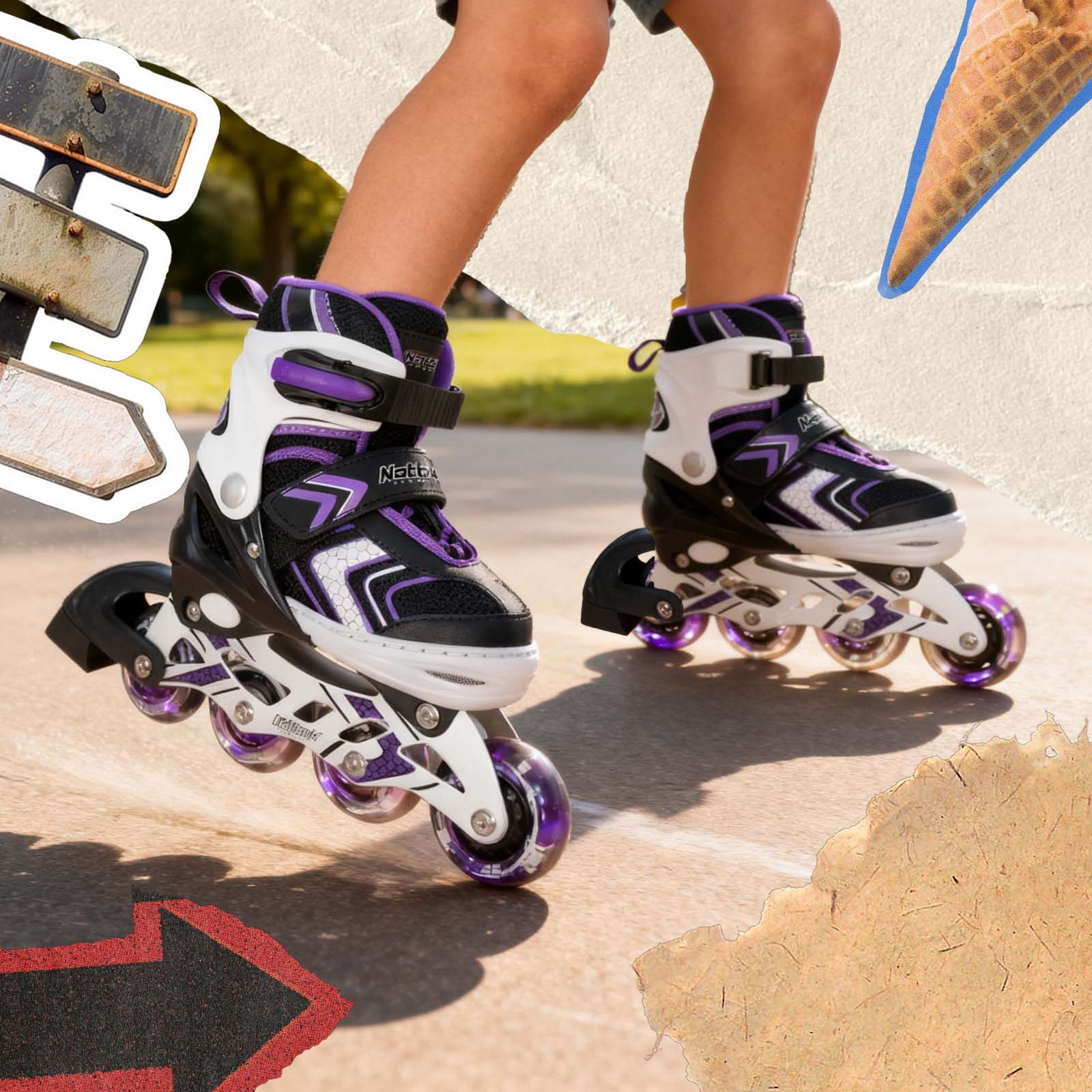Most Nattork skates are adjustable across 4 sizes, so they can grow with your child — simply press the size-adjust button to extend the skate as their feet grow.