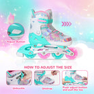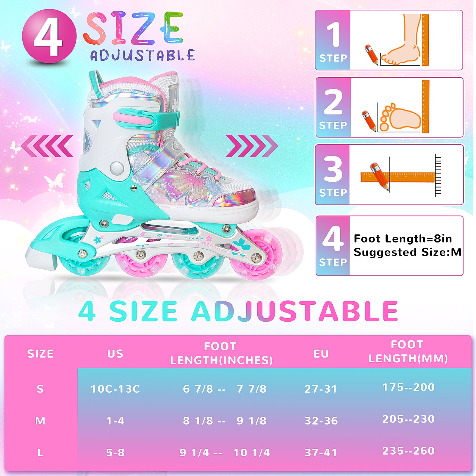 The "Fairy Wing" teal fantasy inline skates feature four adjustable sizes, ensuring every user can enjoy a custom-fit experience. Whether you are a beginner or a professional skater, you can easily find the perfect size for a smooth and joyful ride.