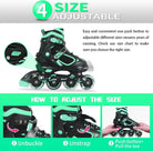 These skates boast remarkable adjustability, presenting four distinct size variations. This eliminates the worries of acquiring the wrong size or the skates being quickly too small for your child's rapidly growing feet. Thanks to the effortless ONE-PUSH-CHANGE size modification mechanism, finding the ideal fit for ensuring ultimate comfort and stability is a breeze.