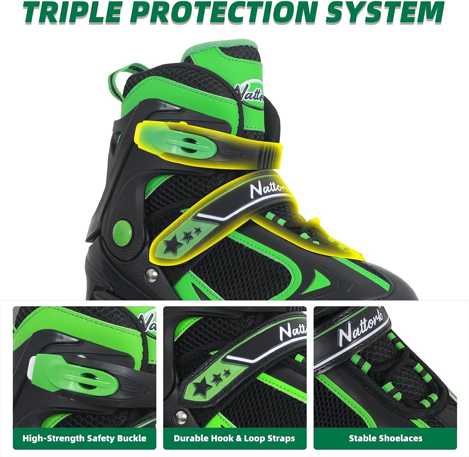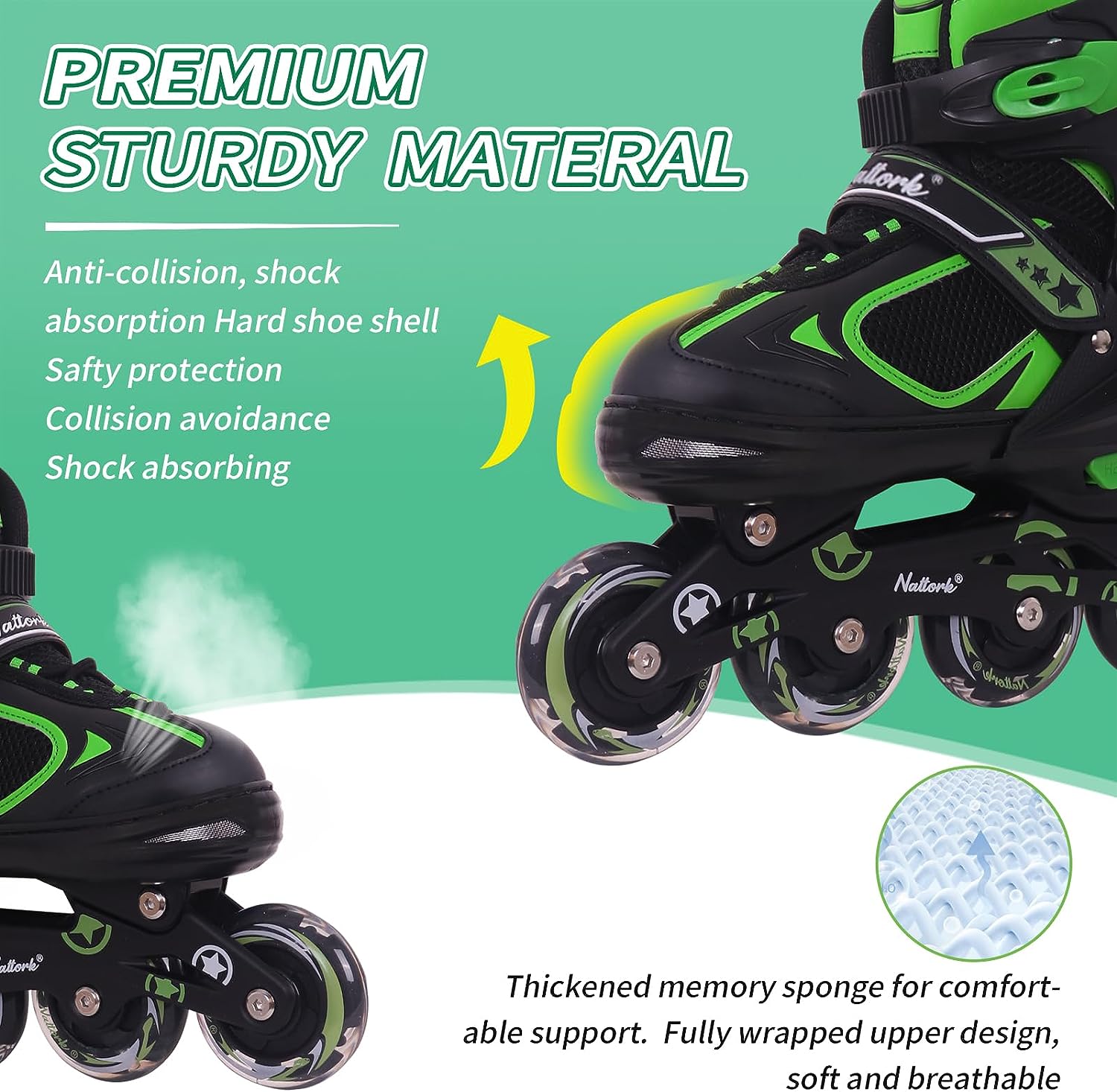 Prioritizing comfort, the Nattork Kids inline skates excel in this department too. The skates' breathable mesh structure ensures that young skaters' feet remain fresh and moisture-free during long periods of activity, effectively preventing discomfort and enabling children to concentrate on their skating escapades.