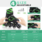 These skates boast remarkable adjustability, presenting four distinct size variations. This eliminates the worries of acquiring the wrong size or the skates being quickly too small for your child's rapidly growing feet. Thanks to the effortless ONE-PUSH-CHANGE size modification mechanism, finding the ideal fit for ensuring ultimate comfort and stability is a breeze.