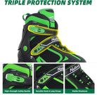 The Model-139i features a triple lock protection system. The top buckle secures the ankle, a secondary velcro strap offers additional safety, and the laces ensure a complete fit. This three-layer approach ensures that the skates conform to a child's feet, providing ample support and protection.