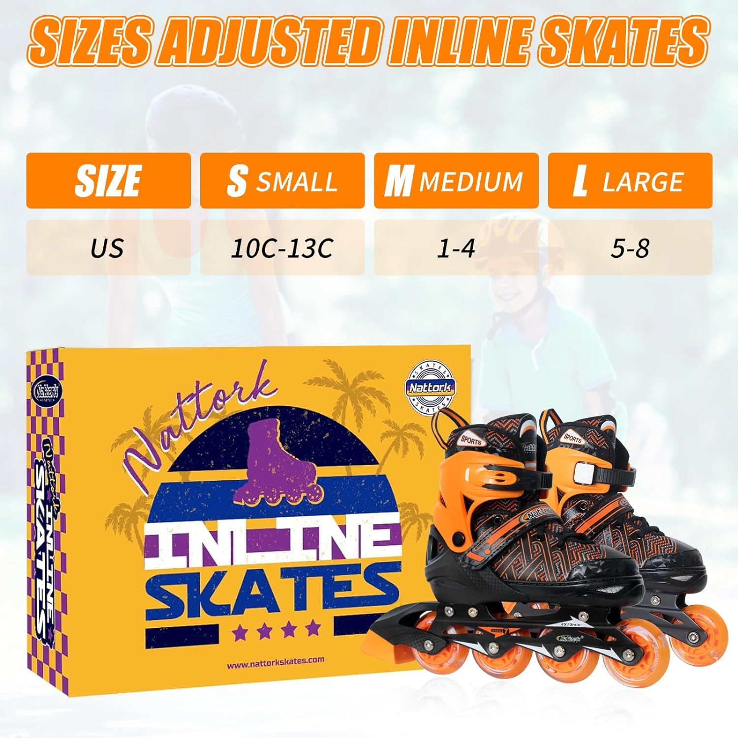 Most Nattork skates are adjustable across 4 sizes, so they can grow with your child — simply press the size-adjust button to extend the skate as their feet grow.