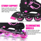 The Nattork Kids inline skates epitomize both durability and performance. Furnished with high-elasticity wheels and ABEC-7 bearings, these skates guarantee a consistent and smooth glide across diverse terrains, empowering young skaters to broaden their skating horizons with confidence.