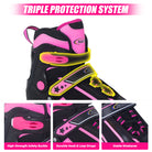 The Model-139i features a triple lock protection system. The top buckle secures the ankle, a secondary velcro strap offers additional safety, and the laces ensure a complete fit. This three-layer approach ensures that the skates conform to a child's feet, providing ample support and protection.