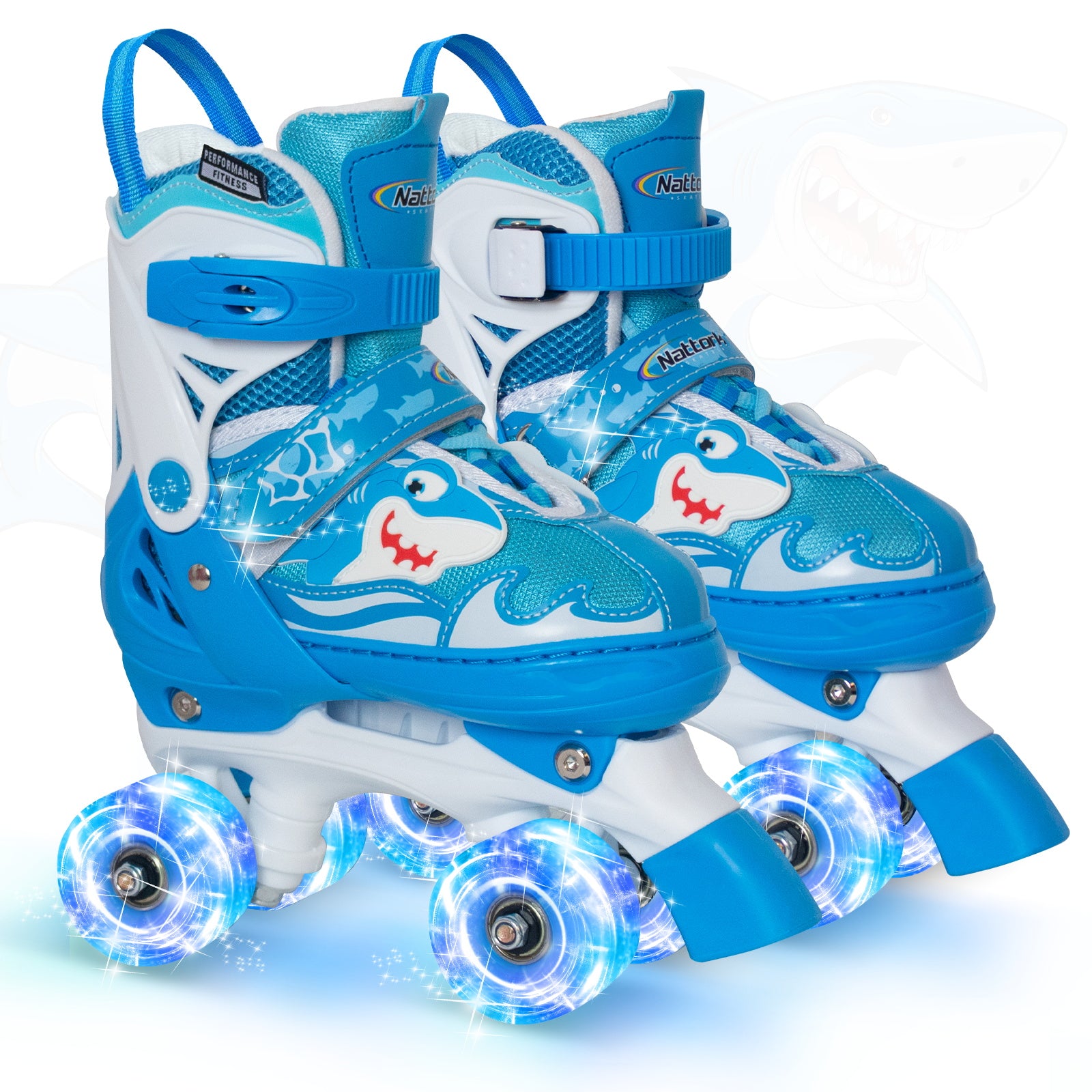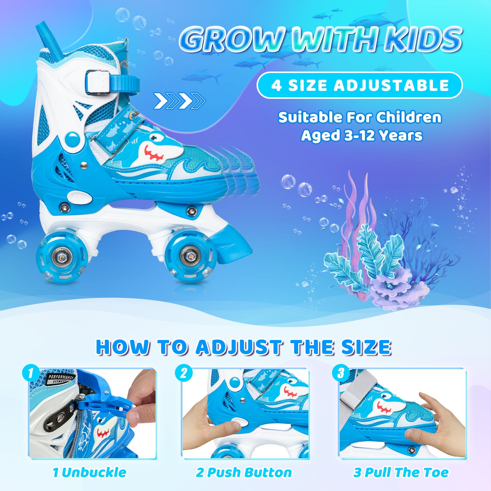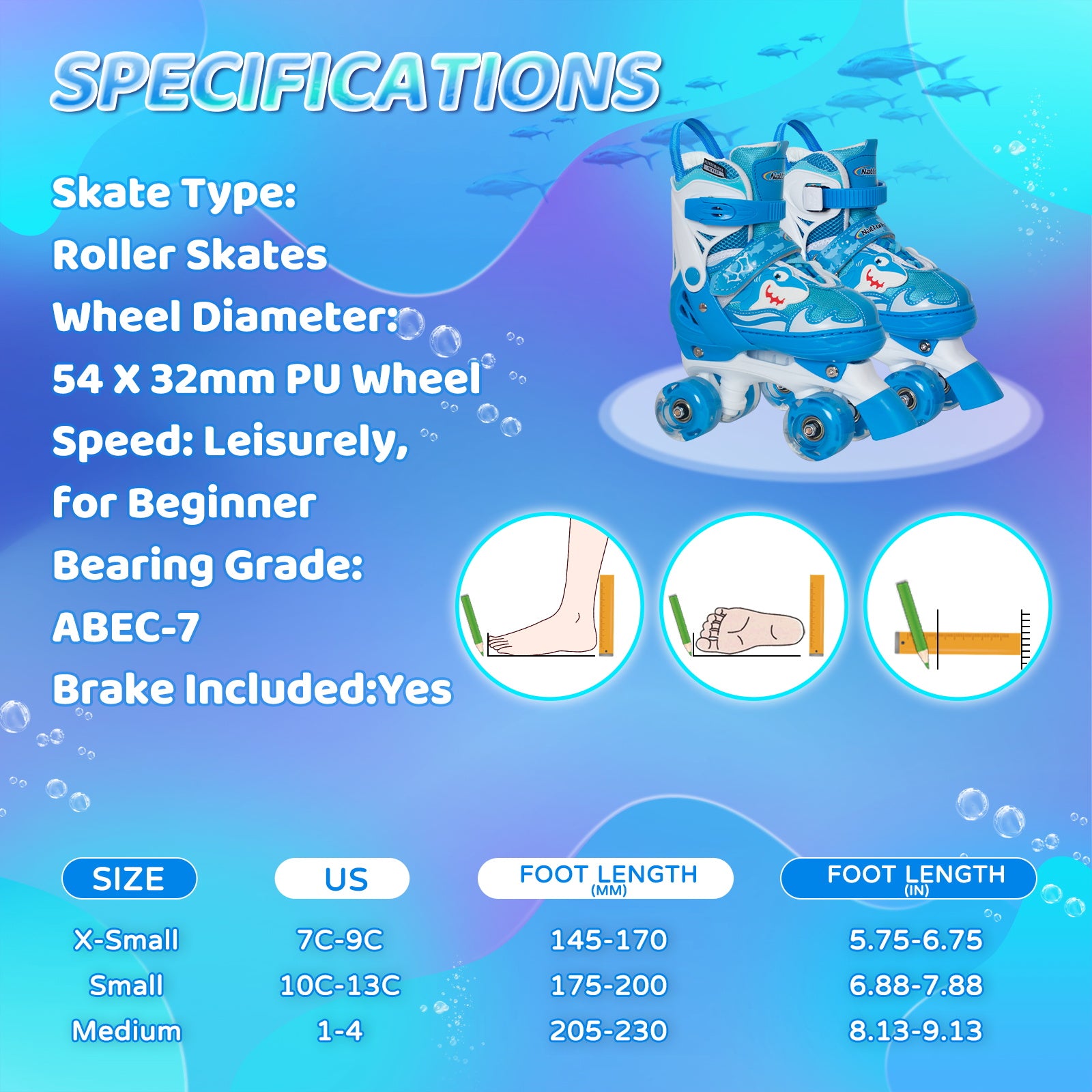 Dive into a splash of fun with the Nattork Adjustable Roller Skates - Blue Shark! Perfect for young adventurers, these skates bring the excitement of the ocean right to your feet.