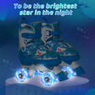 As day turns to night, the fun doesn’t stop. Watch the Blue Shark skates light up with eight glowing wheels that shine like ocean waves. These skates make every glide sparkle, enhancing visibility and adding extra fun to every ride.