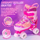 4-Size Adjustable Roller Skates - Nattork Bubble Gum Pink roller skates are designed to grow with your child, easily adjusting to four sizes with a simple button push. This adjustable feature ensures kids can keep using their favorite skates as they grow, making it a practical, long-lasting choice.