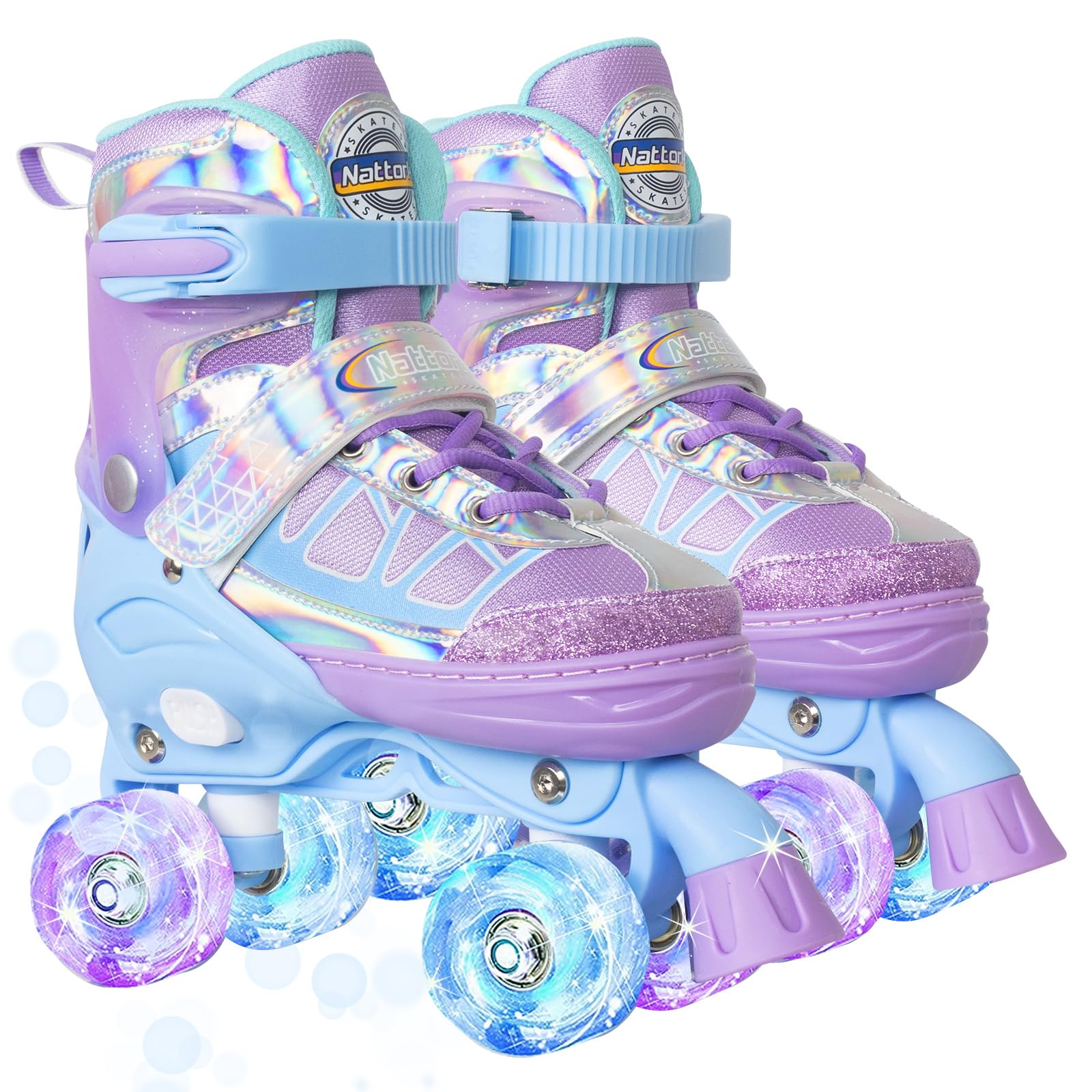 Most Nattork skates are adjustable across 4 sizes, so they can grow with your child — simply press the size-adjust button to extend the skate as their feet grow.