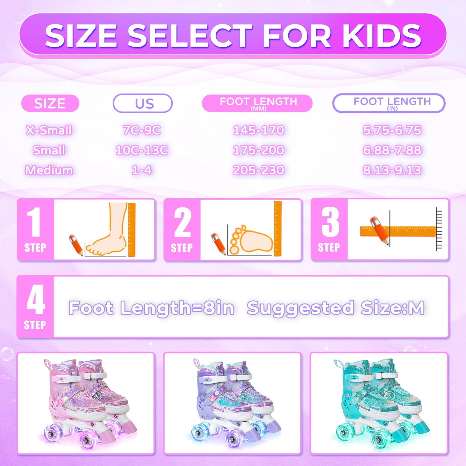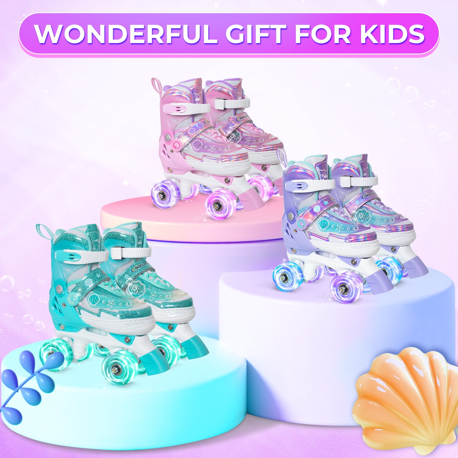 Let your child’s imagination run wild with the Nattork Adjustable Roller Skates - Pink Oceanic Light. They’ll be ready to explore the wonders of the ocean in style, with skates that combine fun, beauty, and the perfect touch of aquatic adventure!