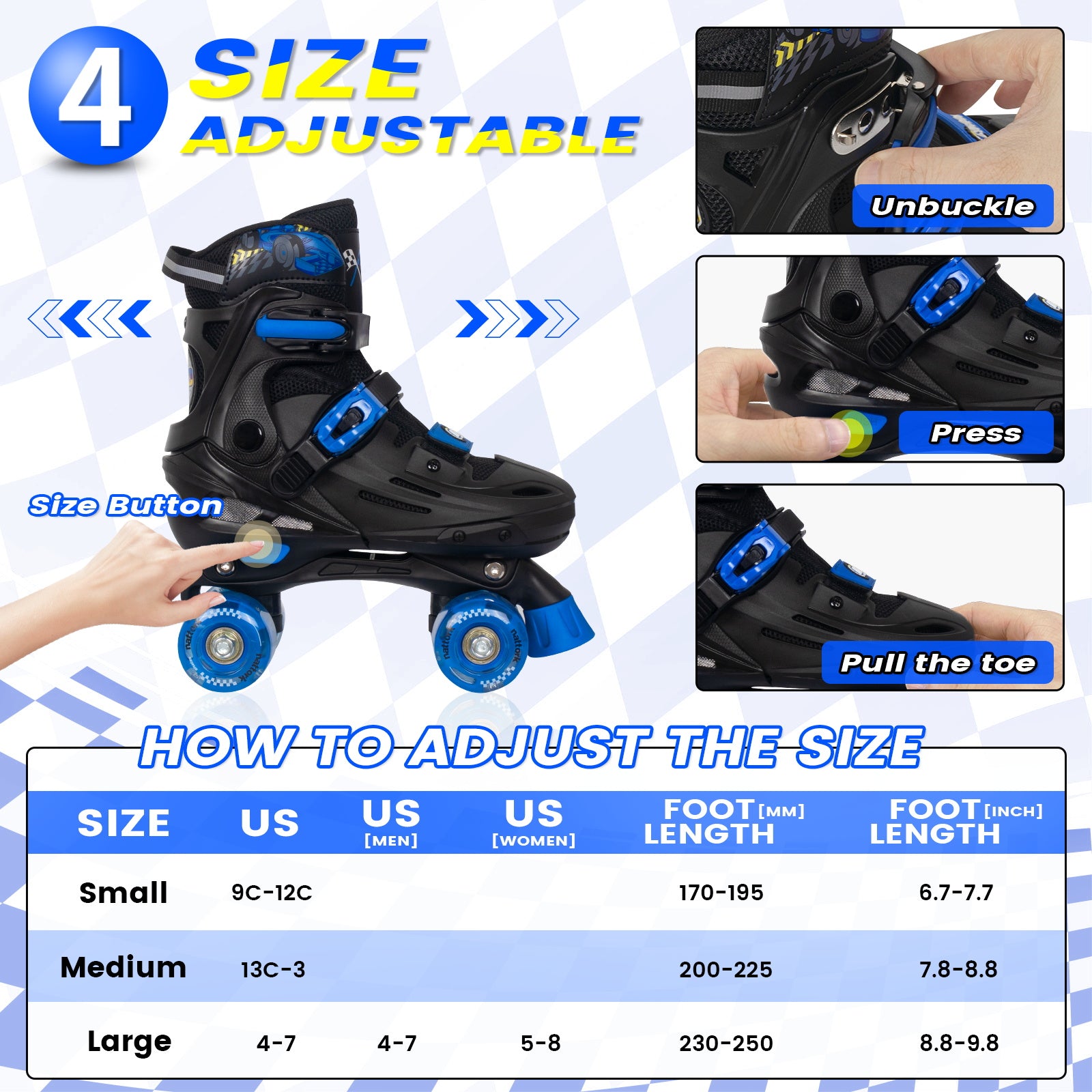 Blade Racers – 4-Size Adjustable Roller Skates for Kids