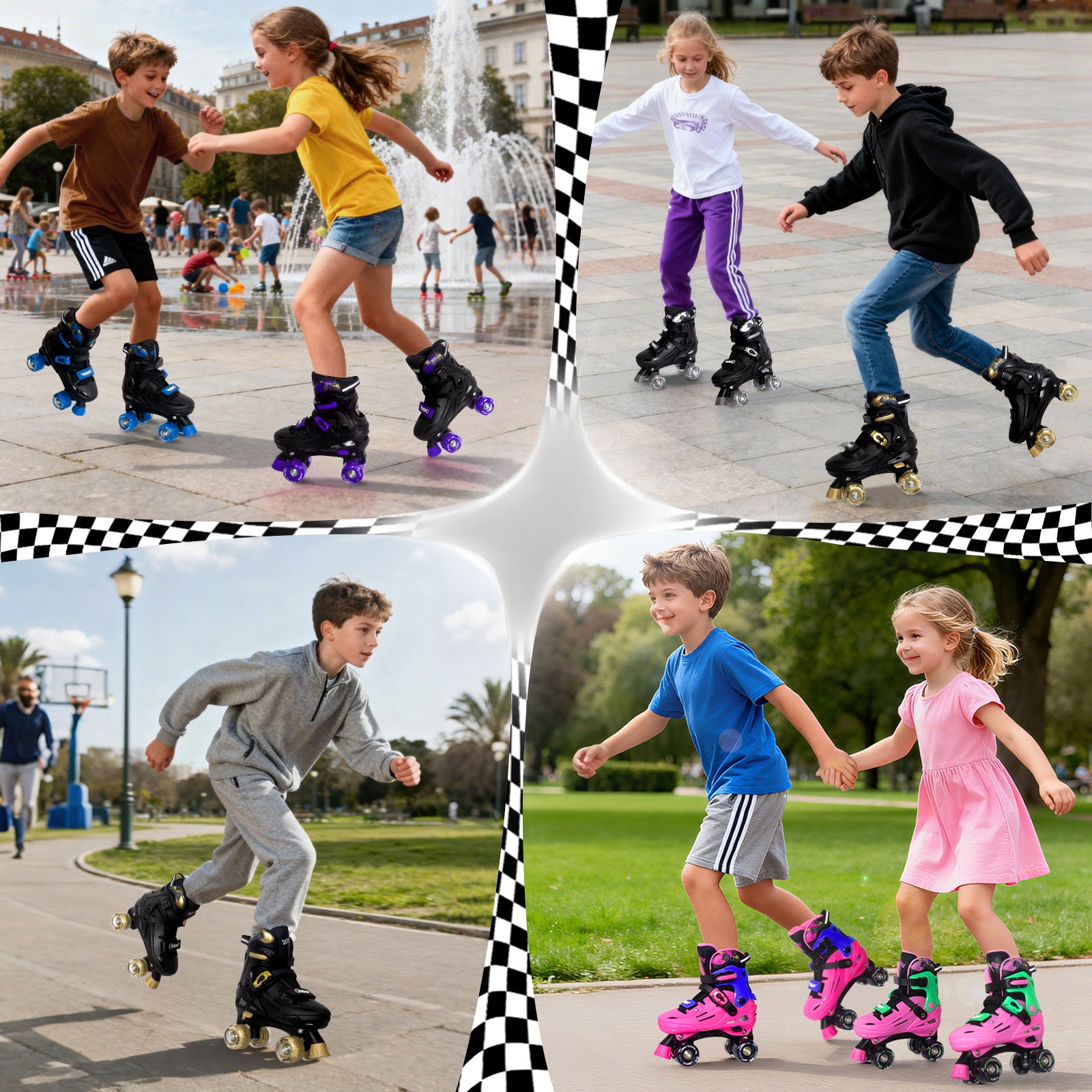 Grow-with-your-kid fun! Blade Racers roller skates fit ages 4–12 with one-button size adjustment. Smooth ABEC-7 bearings, reliable rear brake, and triple-lock safety keep kids confident on every ride. Perfect for birthdays, Christmas, or any active playtime!