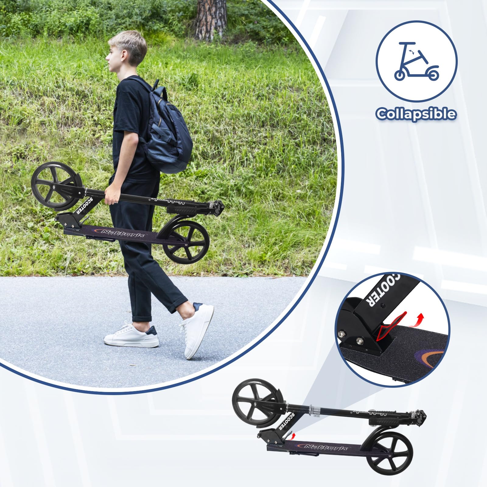 Perfect Gift: The Nattork scooter makes a fantastic gift for birthdays, holidays, or any special occasion. Its sleek design, big wheels, and included wrench accessories ensure that your scooter stays in top condition for years to come.
