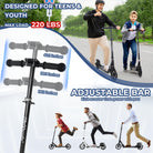 Versatile for All Ages: Whether for a beginner child, a growing teenager, or an adult seeking an easy commuting solution, this scooter is designed to fit all. The adjustable handlebars, ranging from 35 to 40 inches, provide a personalized fit, and its robust frame supports riders up to 220 pounds. One of the best adult scooters for versatility and performance.