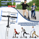 Versatile for All Ages: Whether for a beginner child, a growing teenager, or an adult seeking an easy commuting solution, this scooter is designed to fit all. The adjustable handlebars, ranging from 35 to 40 inches, provide a personalized fit, and its robust frame supports riders up to 220 pounds. One of the best adult scooters for versatility and performance.
