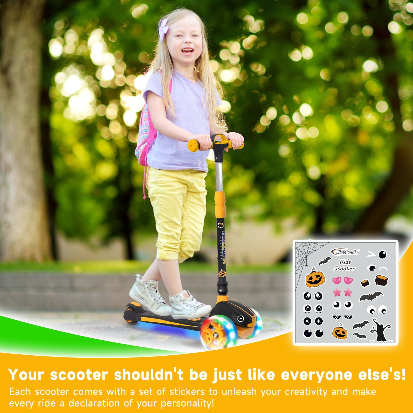 The Nattork Scooter features a delightful, foldable design that ensures easy portability and storage. With adjustable handlebars, you can customize the height as your child grows, making it a fantastic choice for families looking for a practical and compact scooter.