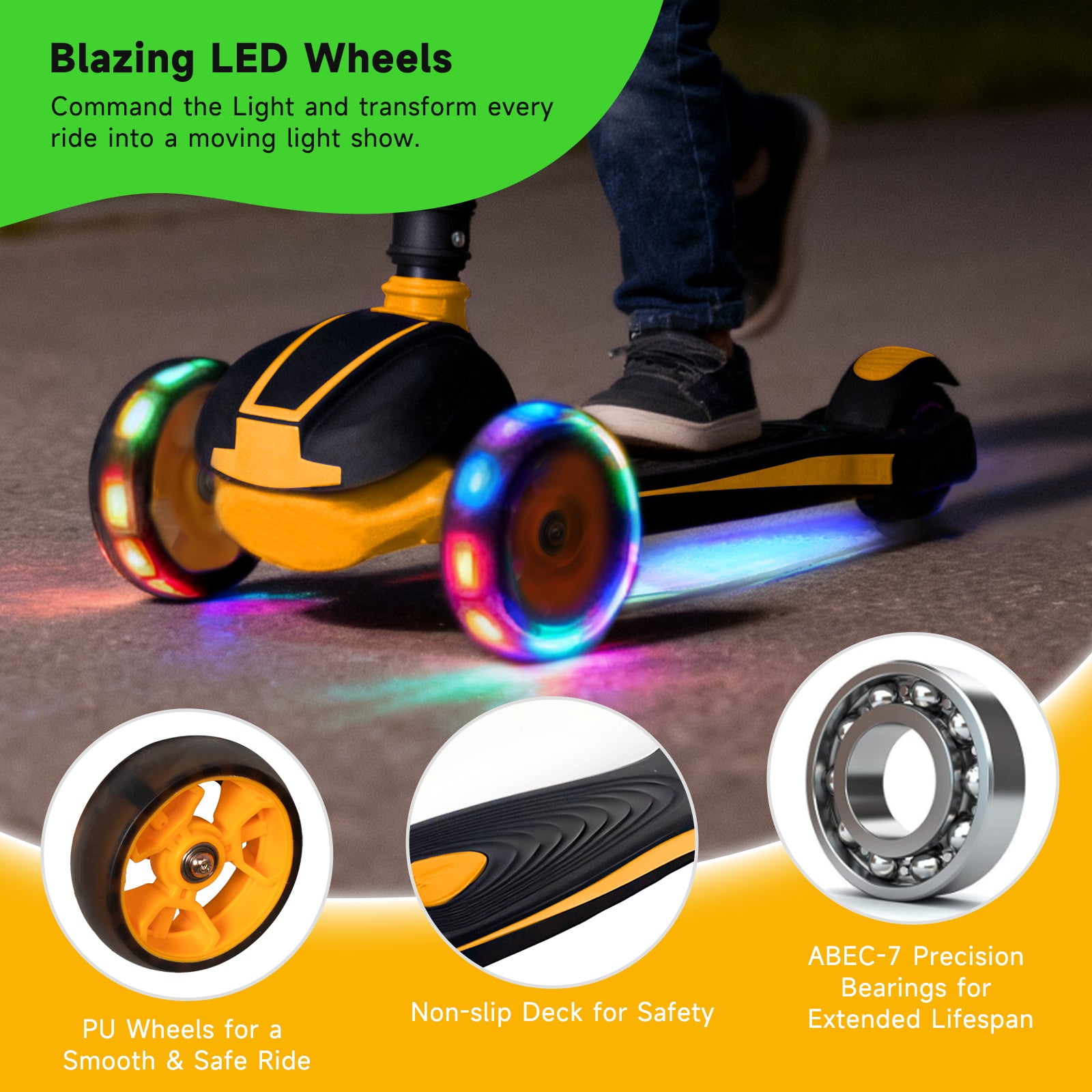🌈 LED Light-Up Wheels: Motion-activated lights create a dazzling glow that makes every ride more magical (and visible at dusk!).