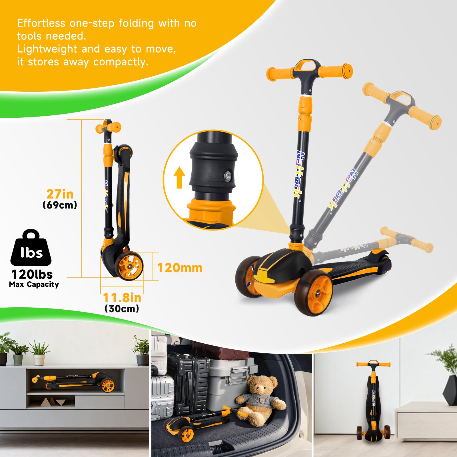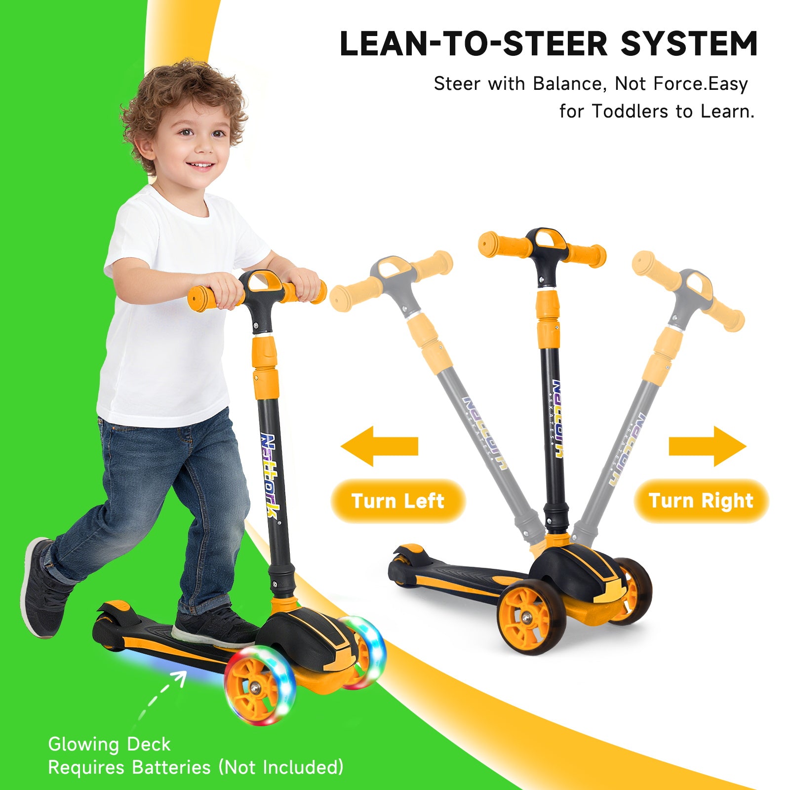 - 1 × Nattork Foldable Light-Up 3-Wheel Scooter (Orange)