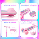 Parents can rest easy knowing their kids ride securely. The Fairy Wing 3-wheel scooter features a wide anti-slip deck, responsive rear brake, and a stable triangular frame that prevents tipping—even during sharp turns.
