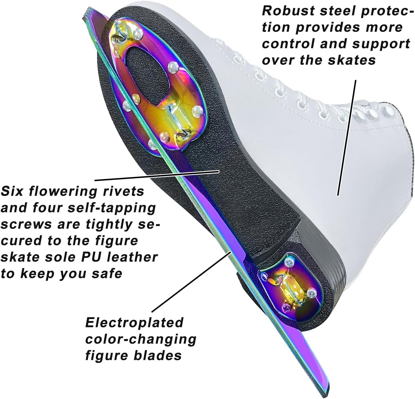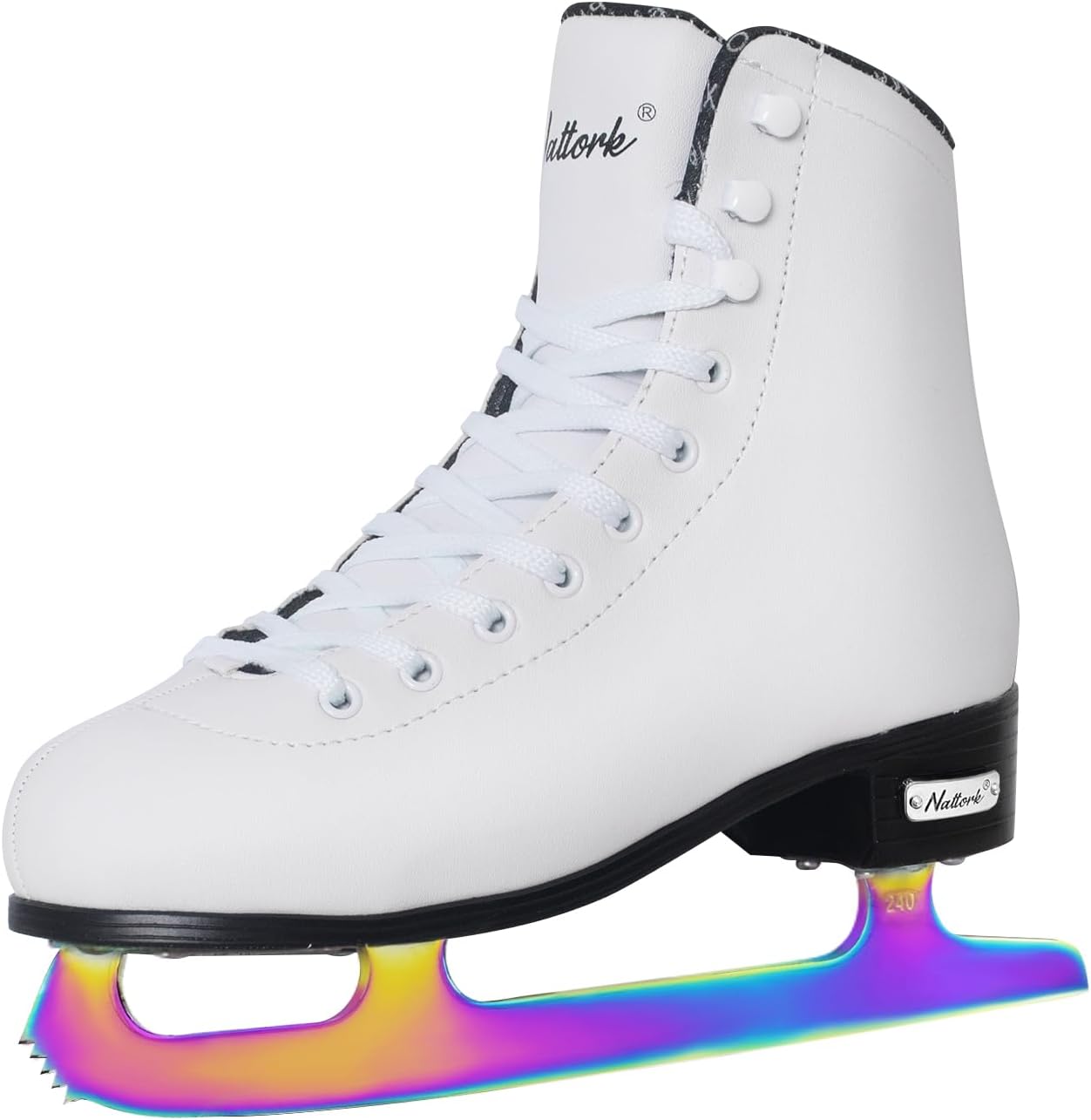 Nattork Ice Skates with Color Blades for Adults - WHITE